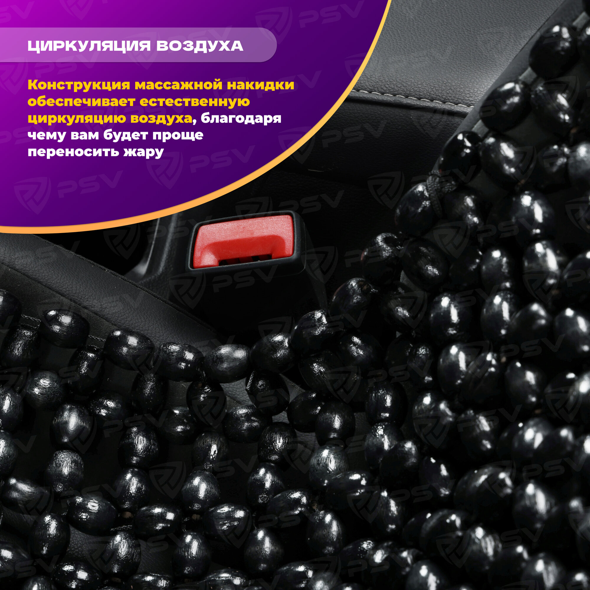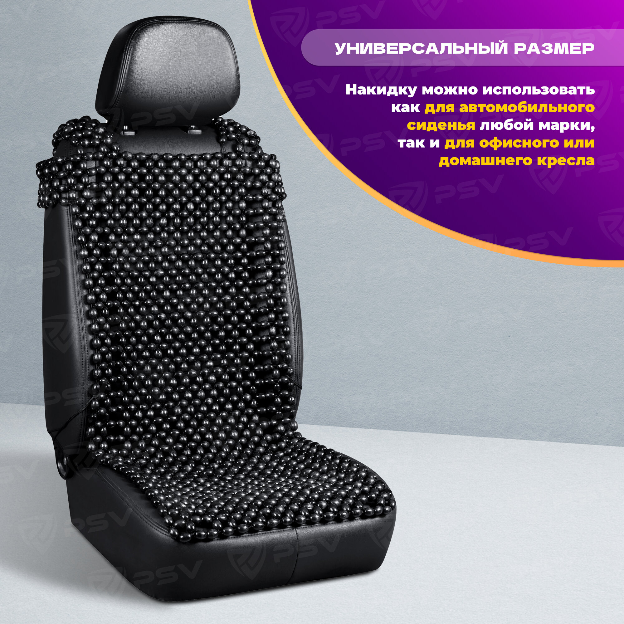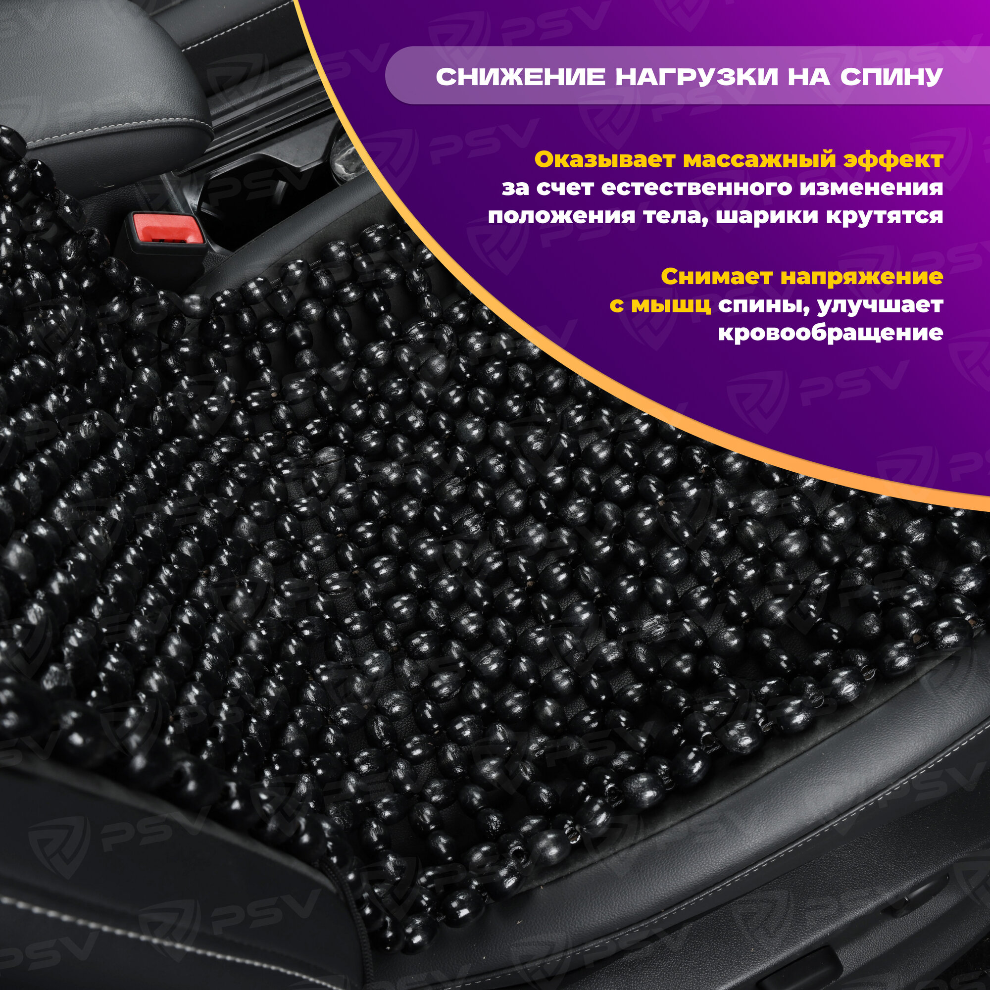 PSV 137158 Накидка на сиденье массажная деревянные шарики PSV 2010 большая с поддержкой черная
