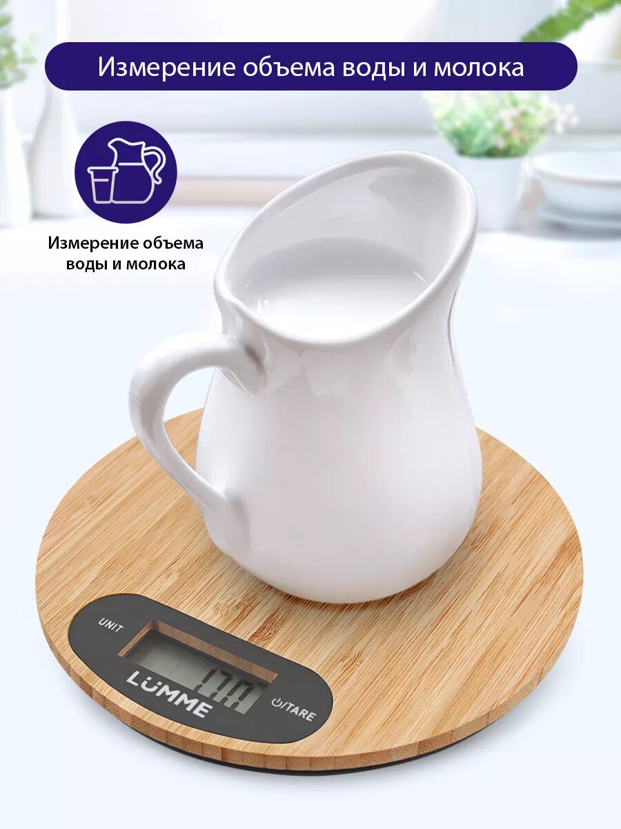 Весы кухонные Lumme / Люмме LU-1347 электронные, бамбук, нагрузка до 5кг / для взвешивания продуктов / техника для кухни