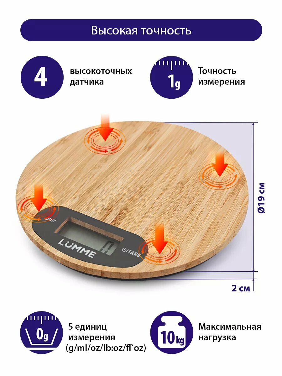 LUMME LU-1347 бамбук весы кухонные сенсор