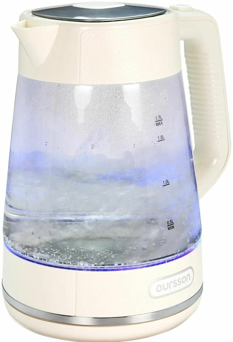 Купить Электрический чайник Oursson "KE1747G/IV", подсветка, 2200Вт, 1,7л (Слоновая кость)