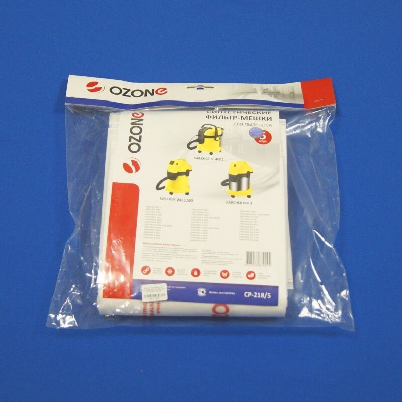 Синтетические фильтр-мешки Ozone CP-218/5 для пылесоса KARCHER MV 3, WD 3, 5 шт