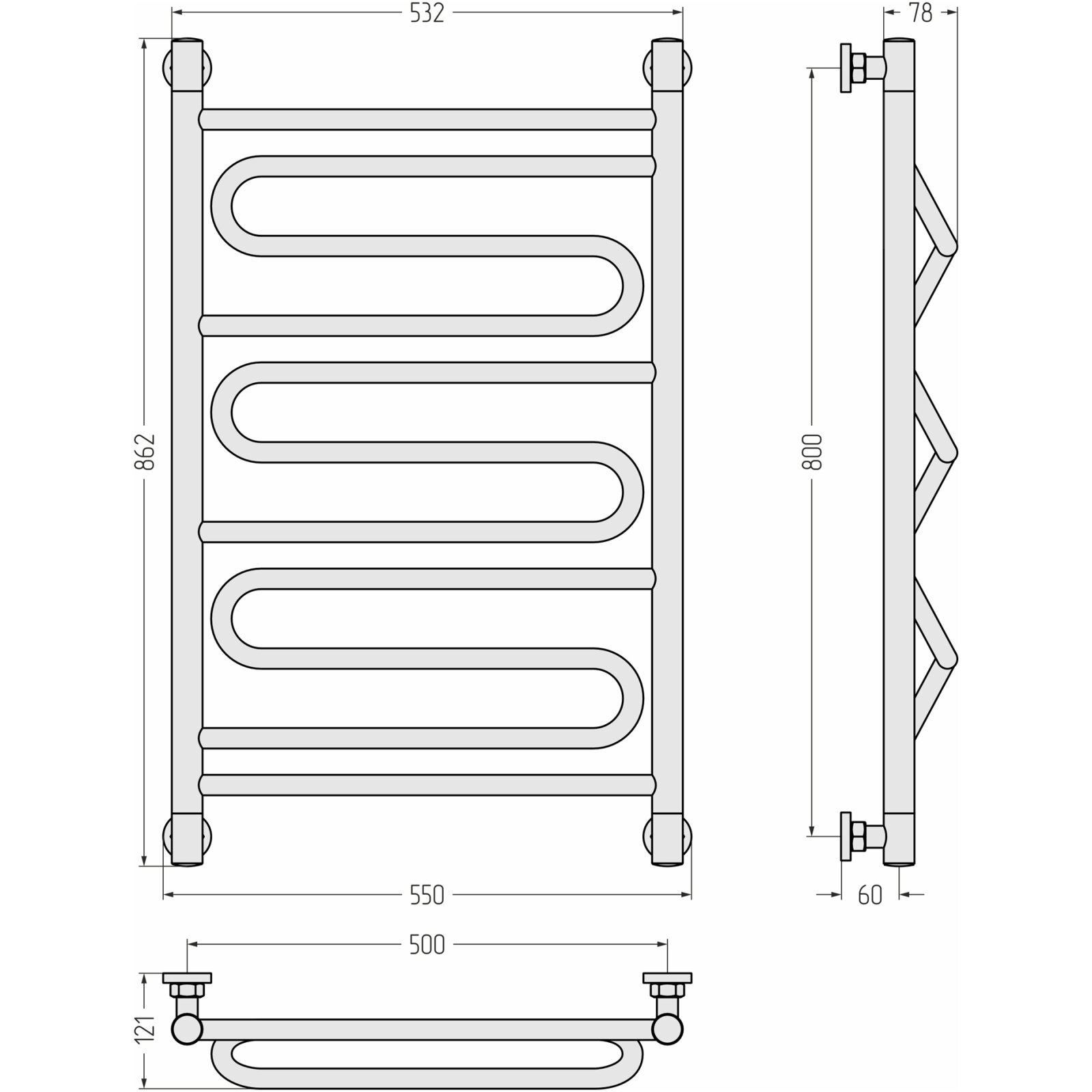 Водяной полотенцесушитель Сунержа Элегия+ 800x500 без покрытия