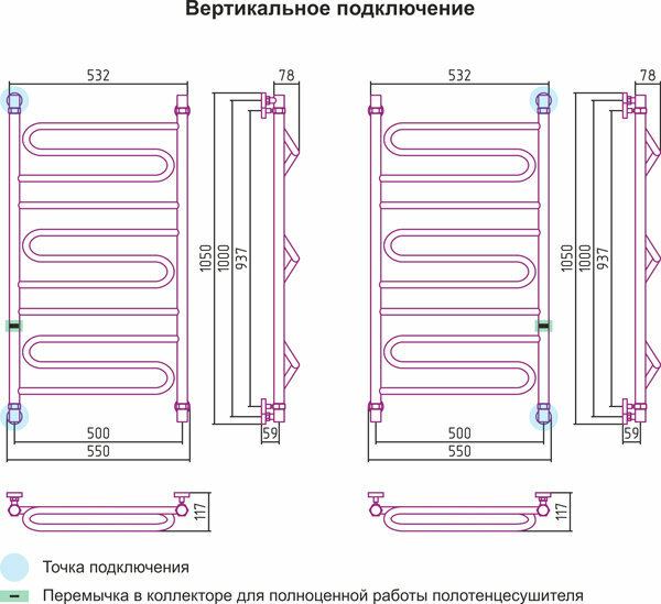 | Направление подключения | нижнее, боковое правое, боковое левое, диагональное |