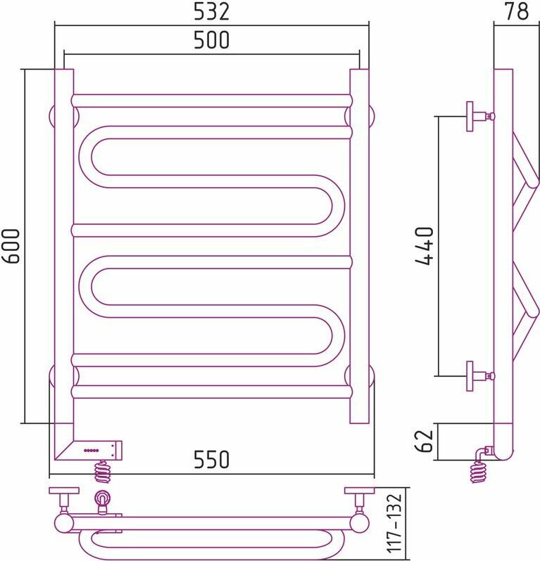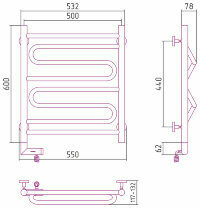 Полотенцесушитель электрический Сунержа 00-5218-6050 Элегия 2.0 Полотенцесушитель электрический РЭБ, 600х500 мм/ МЭМ левый, без покрытия