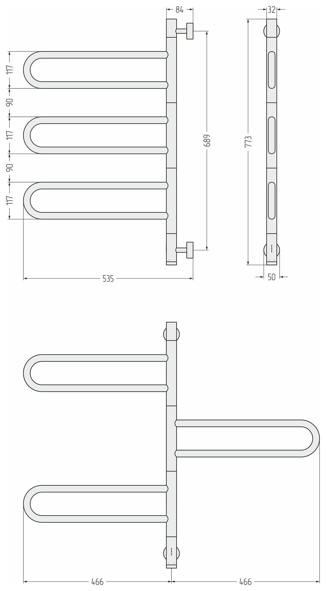 Электрический полотенцесушитель Сунержа Парео 4.0-3С 773x535