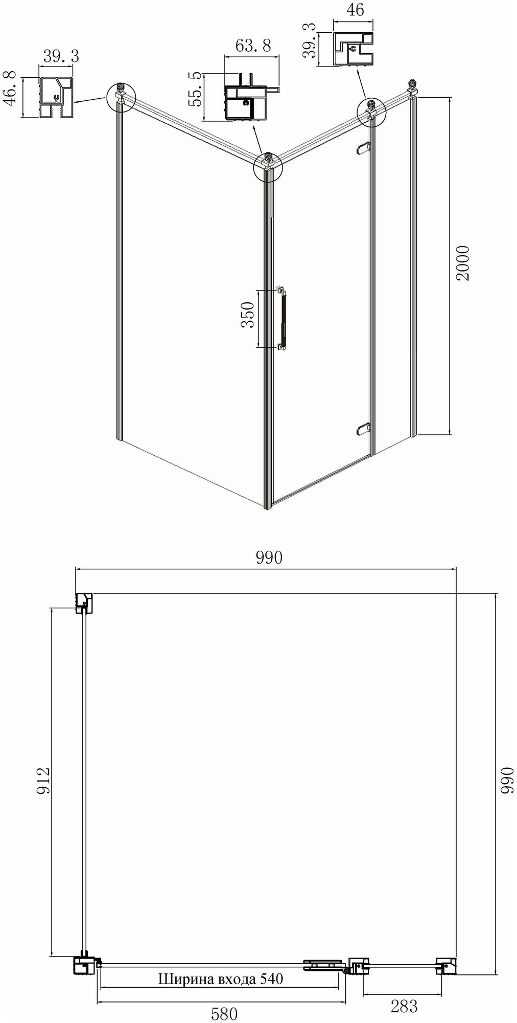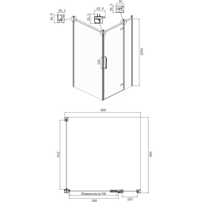 Душевой уголок Black&White Stellar Wind S101 800х800