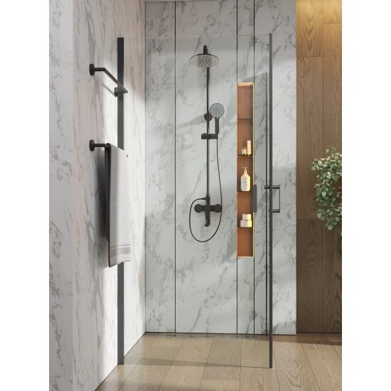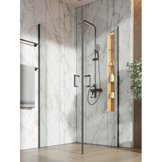 Orange E04-090tb душевой уголок из распашных универсальных дверей, черный