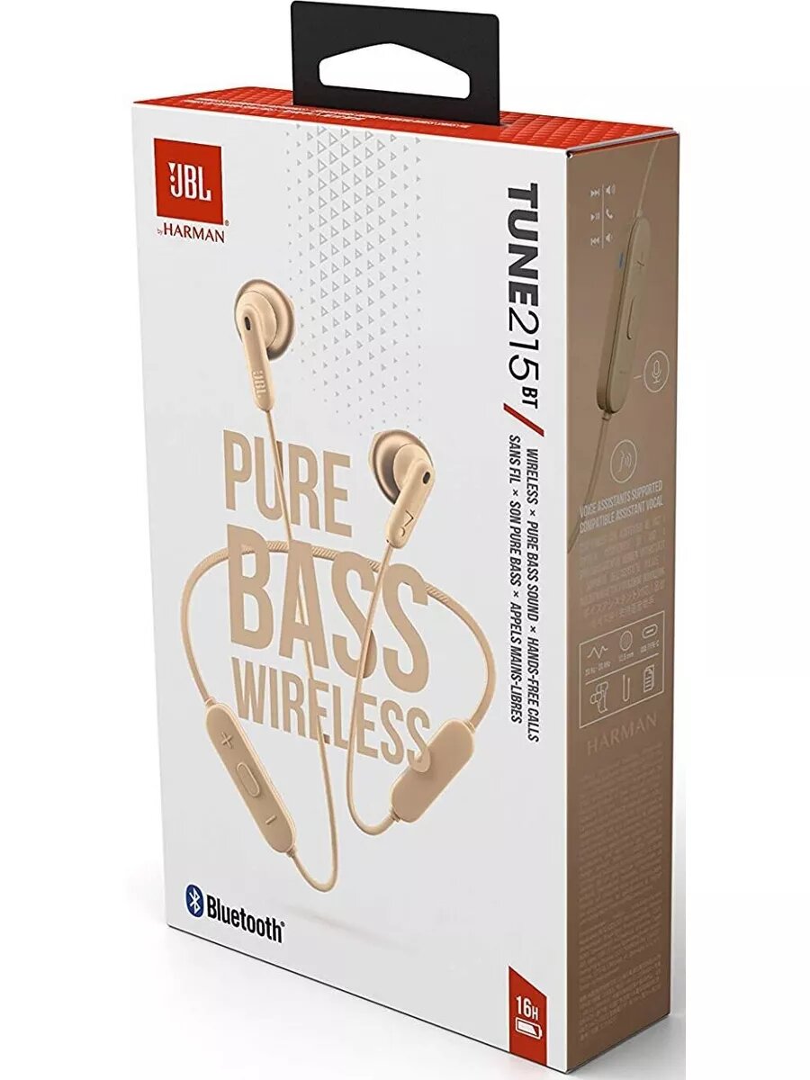 Купить Гарнитура Bluetooth JBL TUNE T215BT вставные, Bt5.0, 20 Ом, 118дБ, время работы до 16ч Шампань