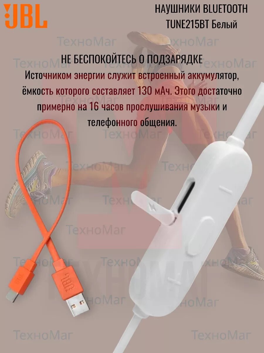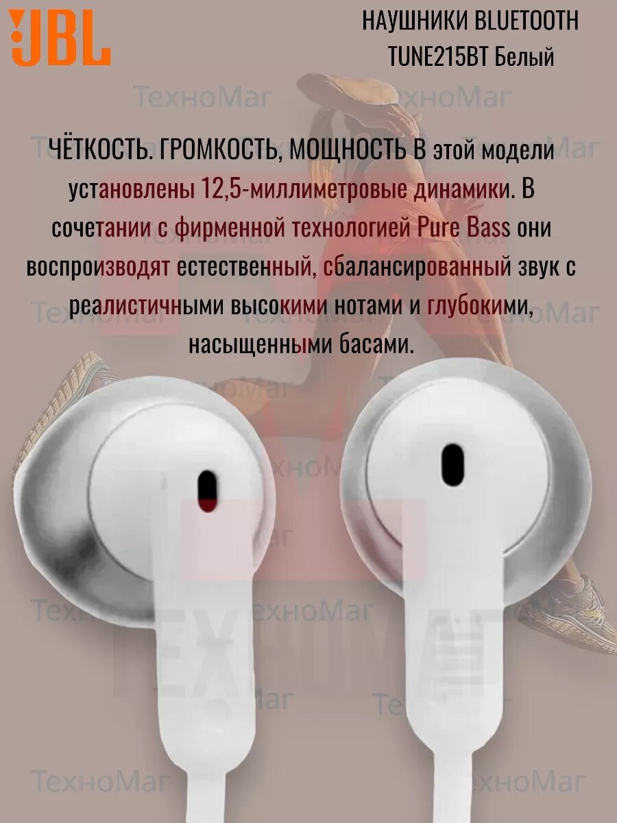 Беспроводные наушники JBL TUNE 215BT белые (bluetooth, 12.5 мм, 130 мAч, JBLT215BTWHTAM)