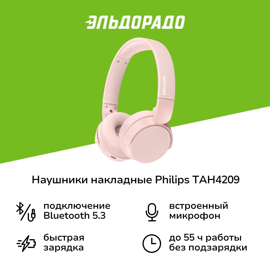 Ниже Вы можете прочитать отзывы на Bluetooth наушники с микрофоном Philips TAH4209PK беспроводная полноразмерная гарнитура - розовая, ознакомится с подробными характеристиками, посмотреть интересные обзоры и фотографии на Bluetooth наушники с микрофоном Philips TAH4209PK беспроводная полноразмерная гарнитура - розовая.