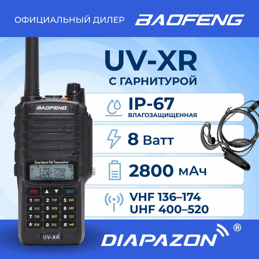 Рация BAOFENG UV-XR влагозащищенная IP-67 с гарнитурой в комплекте интересное: