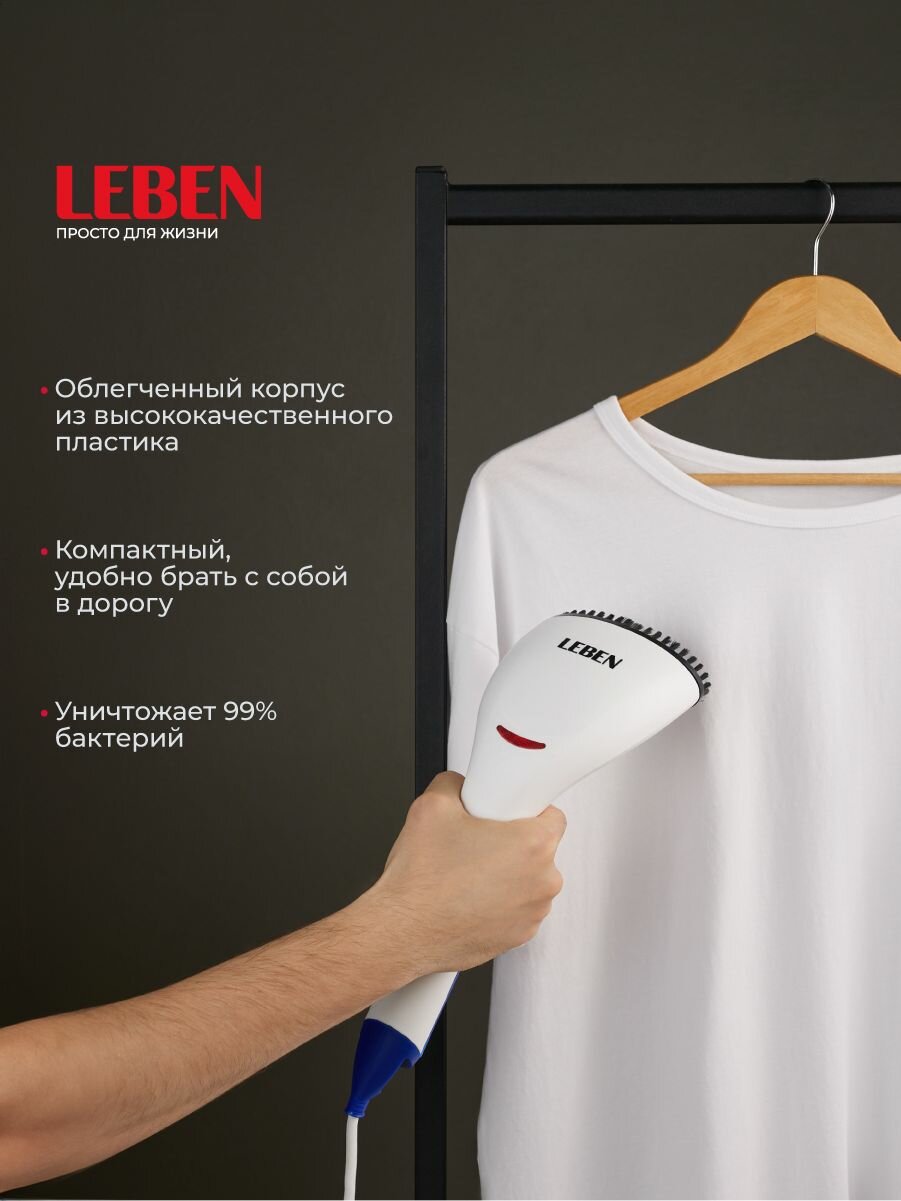Отпариватель ручной LEBEN 249-030 [1300 Вт, поток пара: 15 г/мин, объем: 0.06 л, белый с синим]