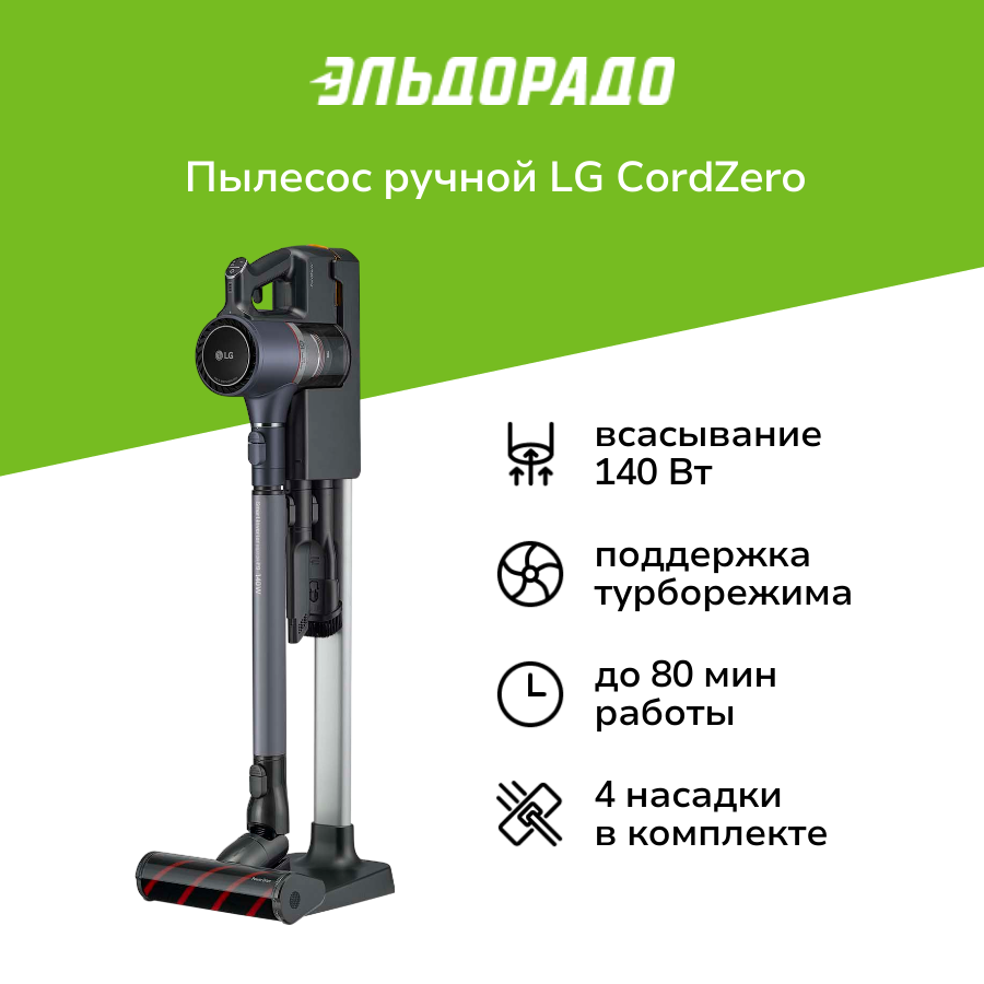 Пылесос вертикальный LG A9MULTICARE CordZero серый [питание - от аккумулятора, 450 Вт, уборка: су интересное: