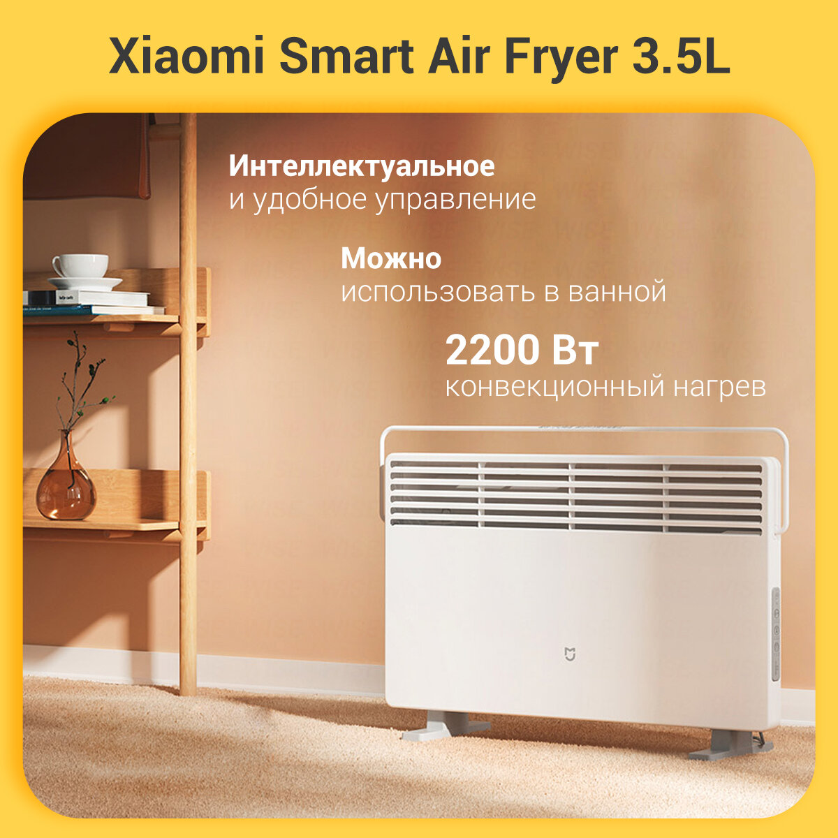 | Плюсы: | Ничего лишнего, хорошее основание, греет сильно, бонусом идет удаленное управление MiHome |