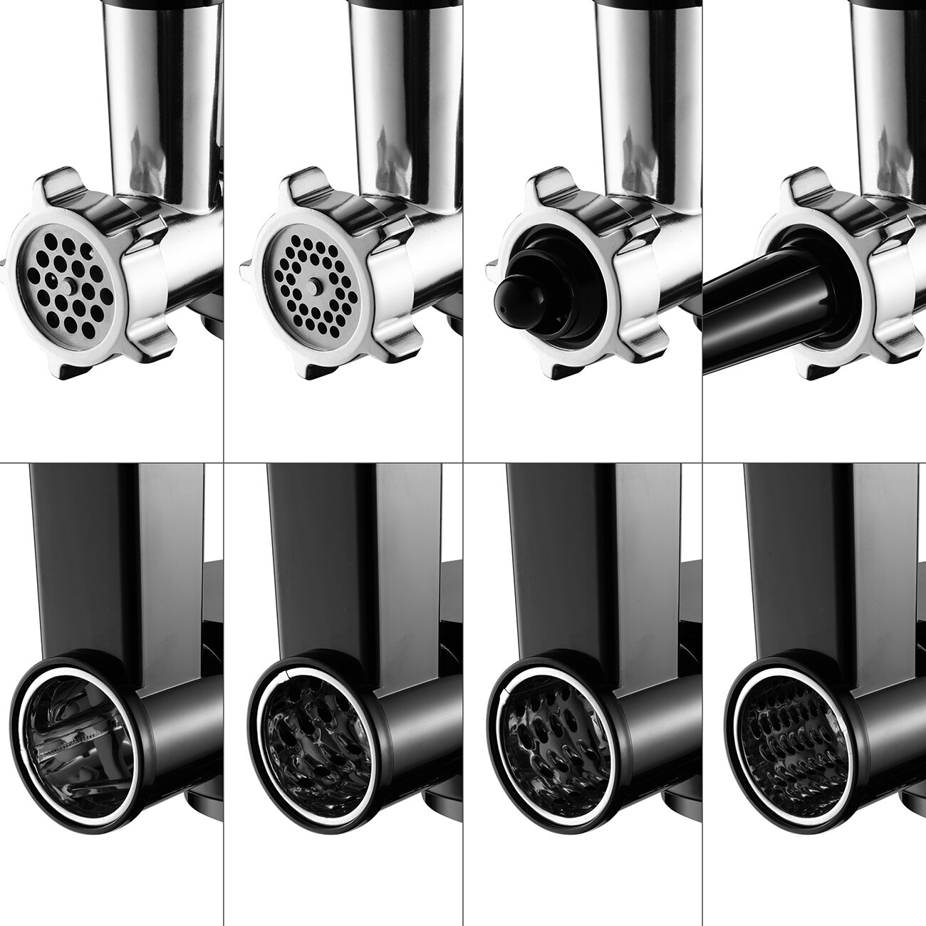 насадка для теста, насадка для взбивания, терка, насадка для нарезки ломтиками, общее число насадок: 12