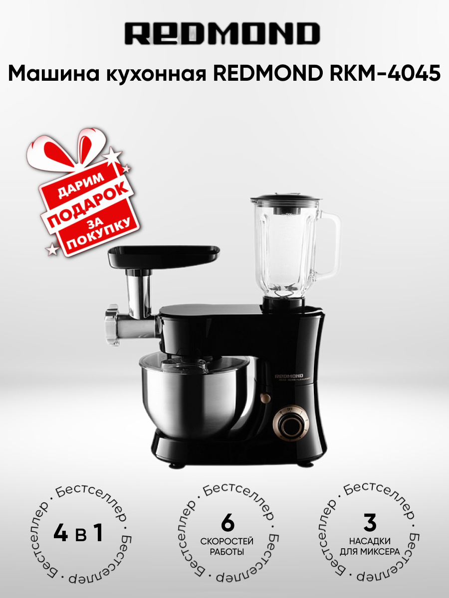 Кухонная машина REDMOND RKM-4045 с планетарным миксером, стационарным блендером, мясорубкой и овощерезкой, черный интересное: