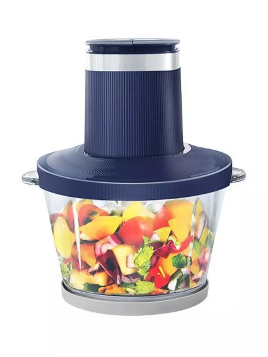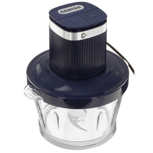 Купить Измельчитель кухонный электрический CENTEK CT-1397: Blue, чоппер, 600Вт, 2 скорости, стеклянная чаша 2 л, 4 лезвия, резиновое основание