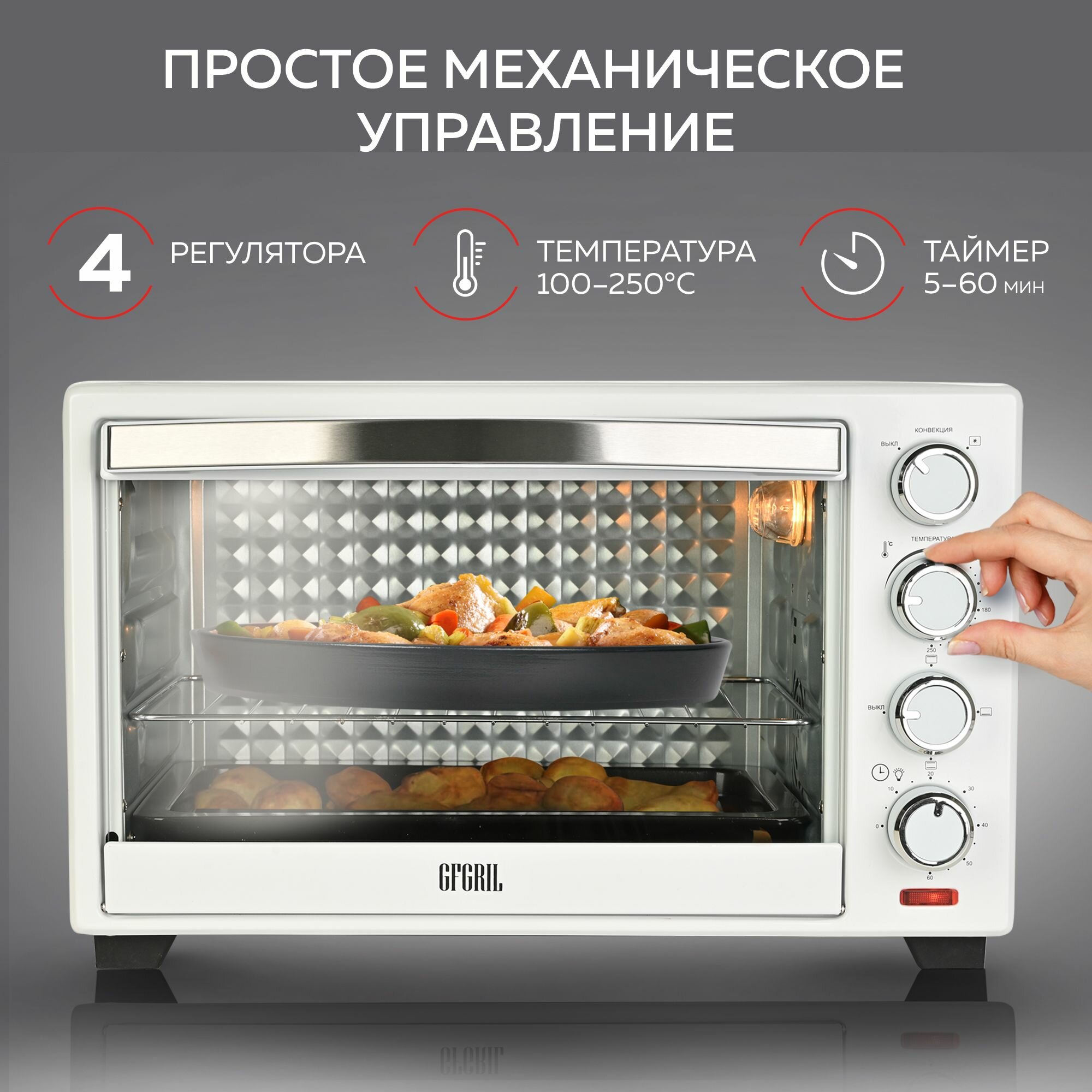 Многофункциональная электрическая мини-печь GFGRIL GFO-30B Convection Plus, электрическая мини печь с конвекцией, электрическая духовка GFGRIL GFO-30B