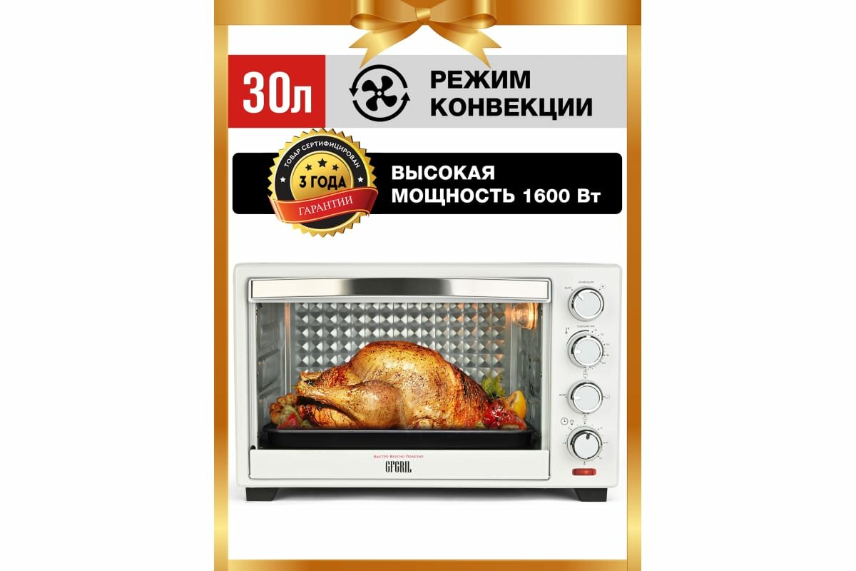 СохранитьМногофункциональная мини-печь электрическая GFGRIL GFO-30W, 30 л, 1600 Вт интересное: