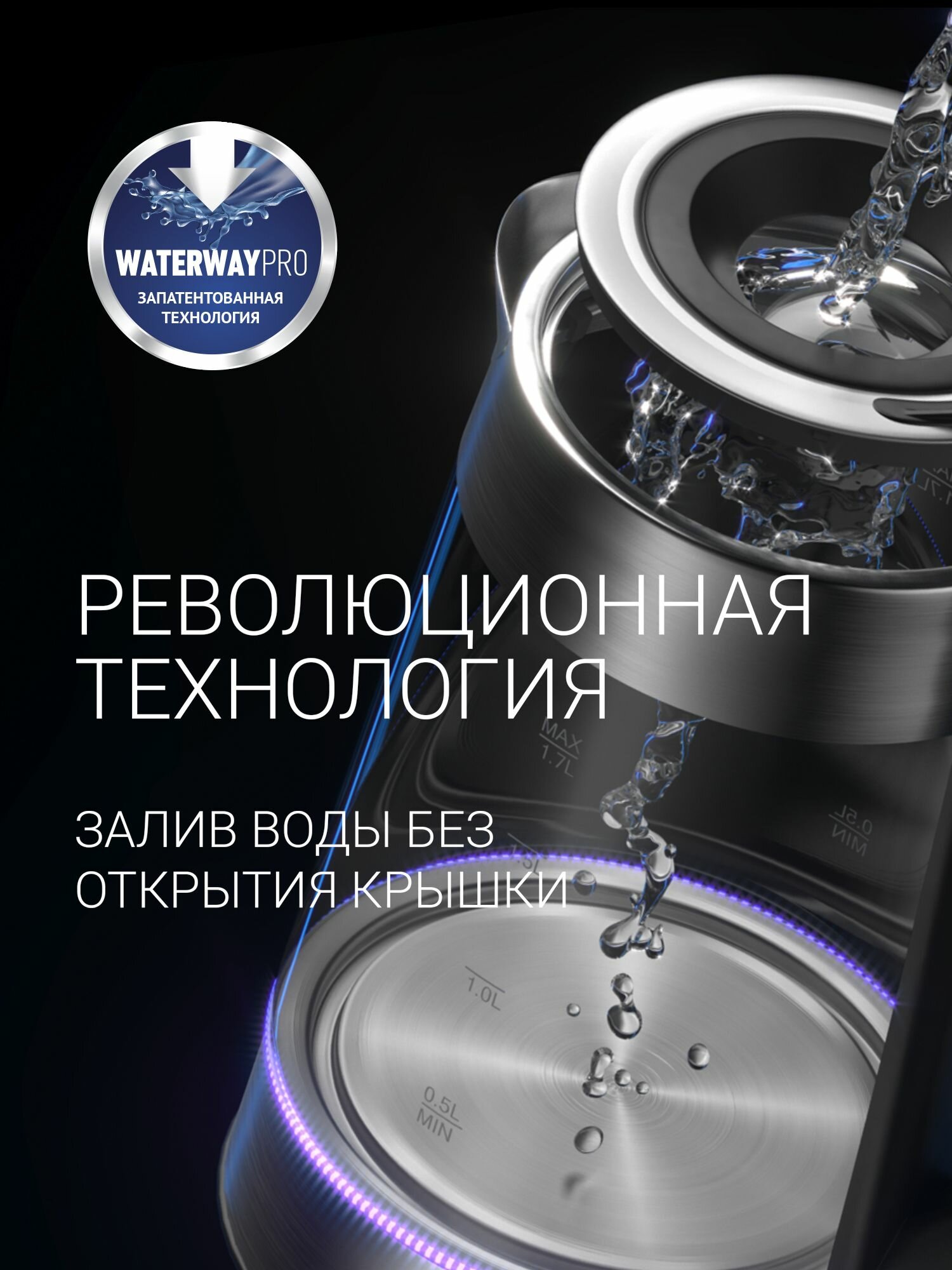 Чайник Polaris PWK1753CGL чёрный WATERWAY PRO STRIX 1800-1950ВТ 1,5 л.