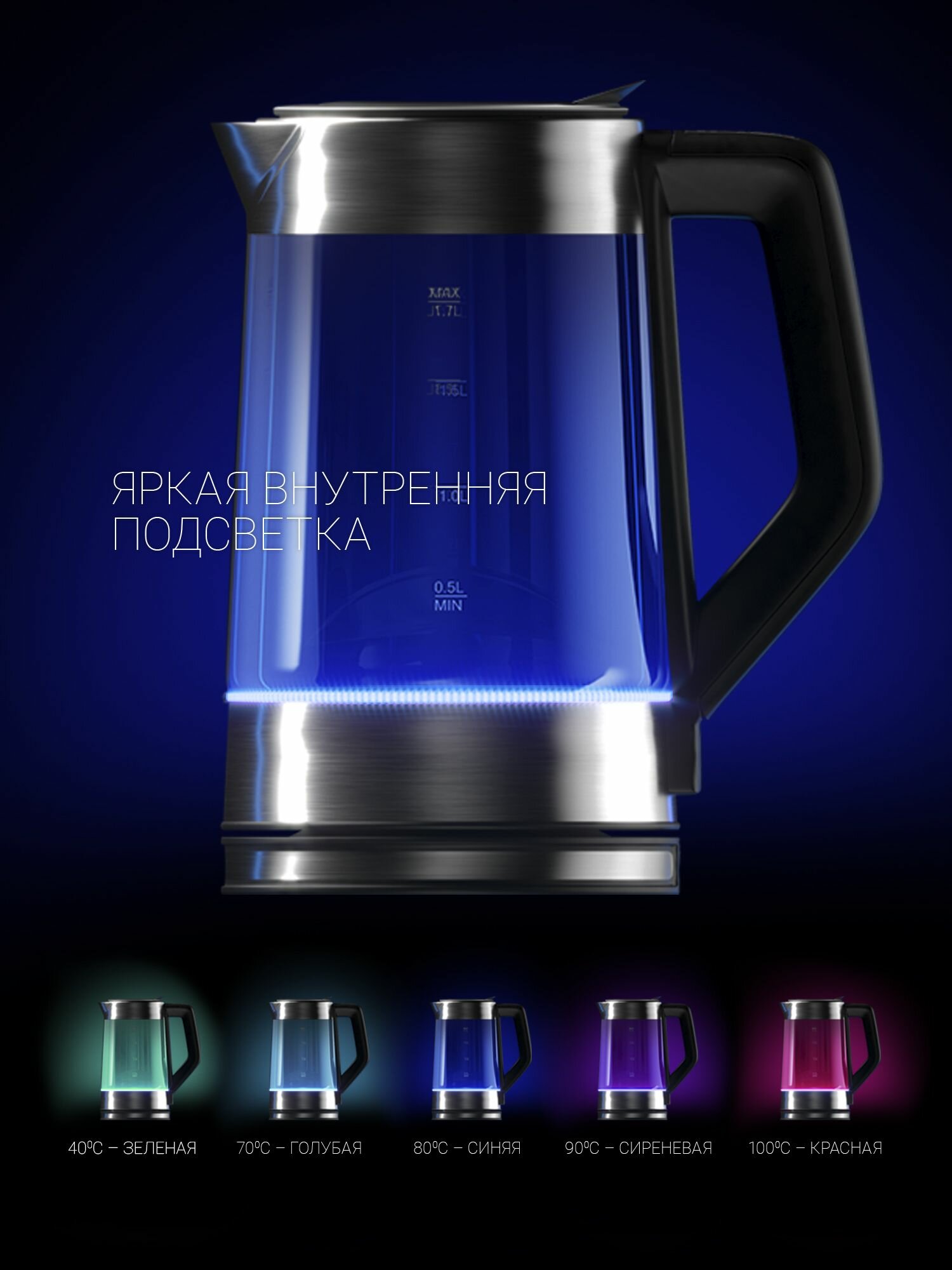Электрический чайник Polaris PWK 1753CGL стеклянный, с подсветкой, черный
