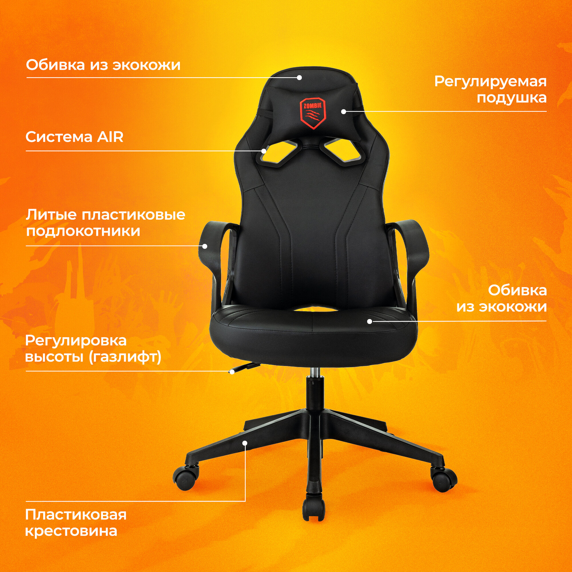 Кресло игровое ZOMBIE RUNNER черный/желтый искусственная кожа крестовина пластик