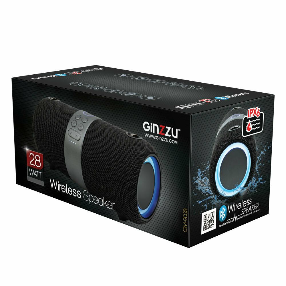 Ginzzu GM-903B, BT-Колонка 28W 3Ah TWS IPX6 USB AUX FM RGB
