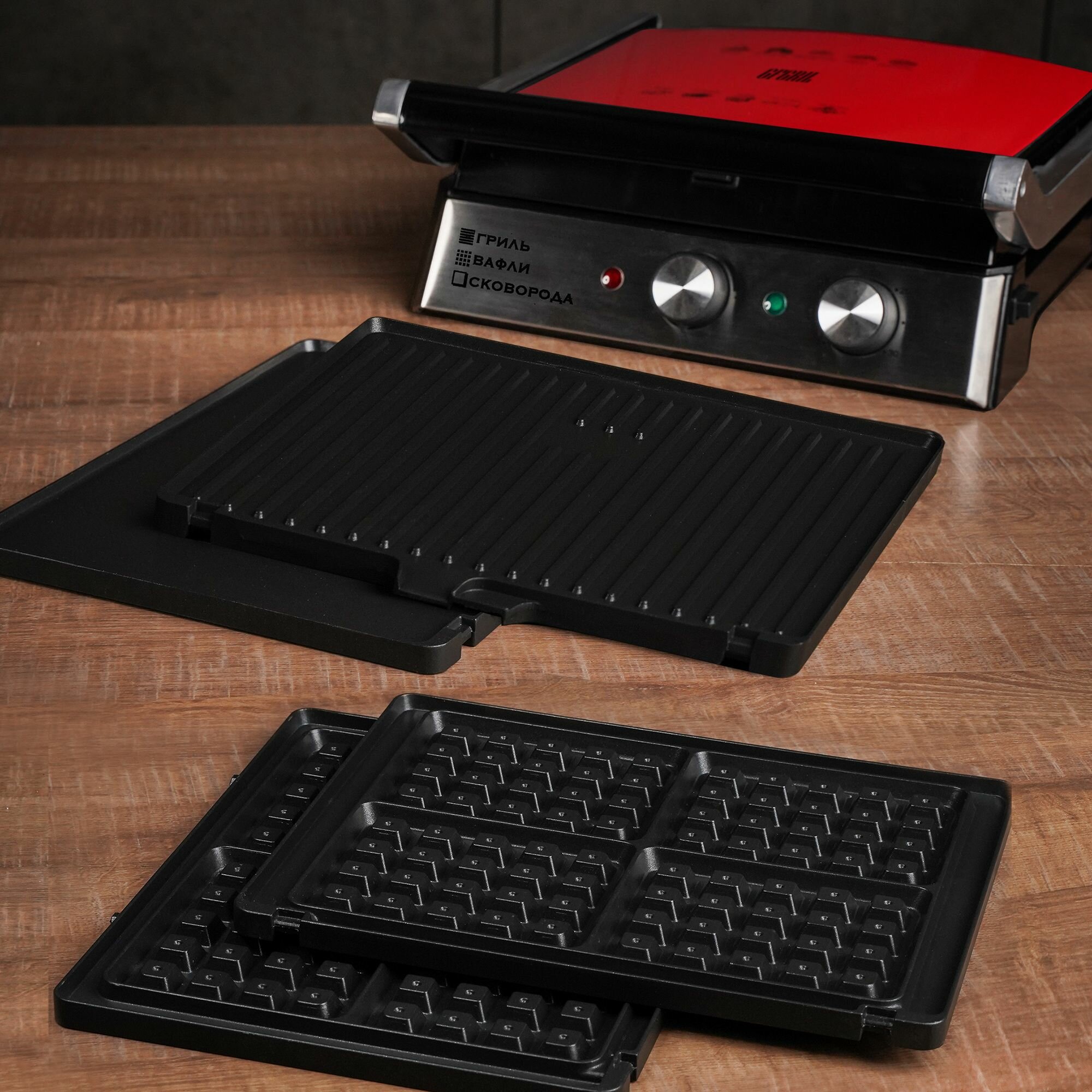 | Плюсы: | Красивый гриль, отличная мощность. Только приобрели на Новый год, будем пользоваться, много хороших отзывов. За съемные панели и насадку для вафель отдельный лайк) |