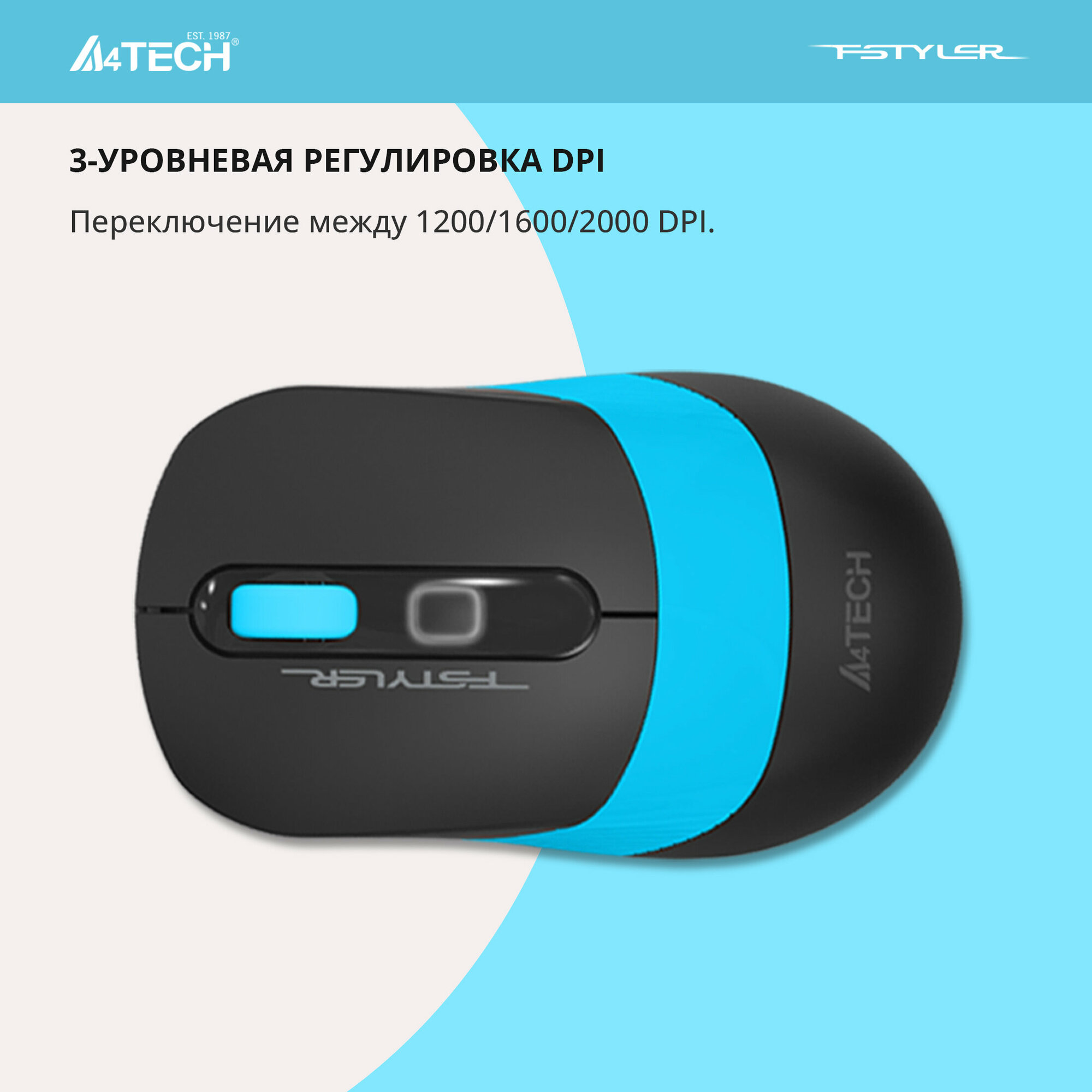 Мышь A4Tech Fstyler FG10S (черный/голубой)