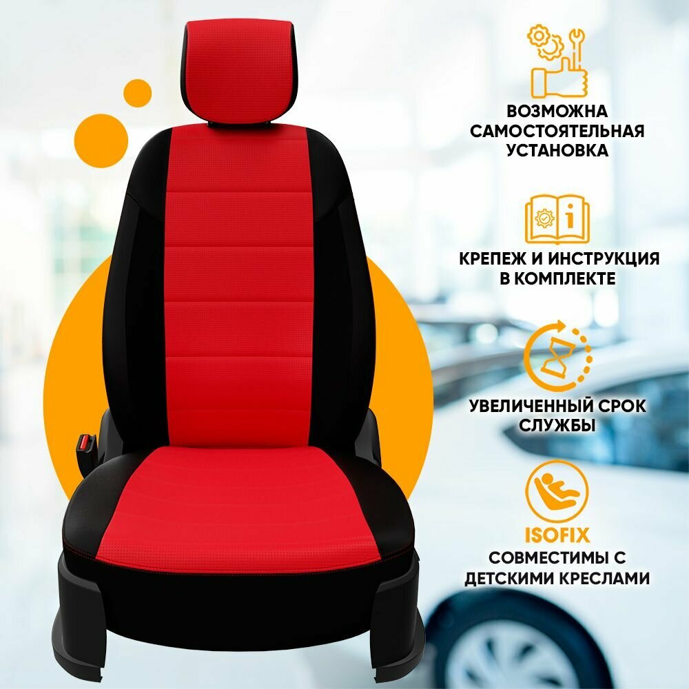 Авточехлы на Skoda Octavia III (A7) (Elegance) "Классика" экокожа, черно-красный