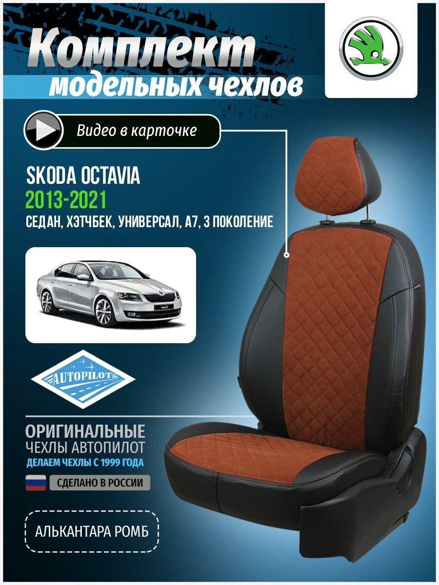 Комплект чехлов Автопилот Алькантара ромб Skoda Octavia A-7 Elegance (с подлокотником) Hb/Wag с 1 Коричневый +