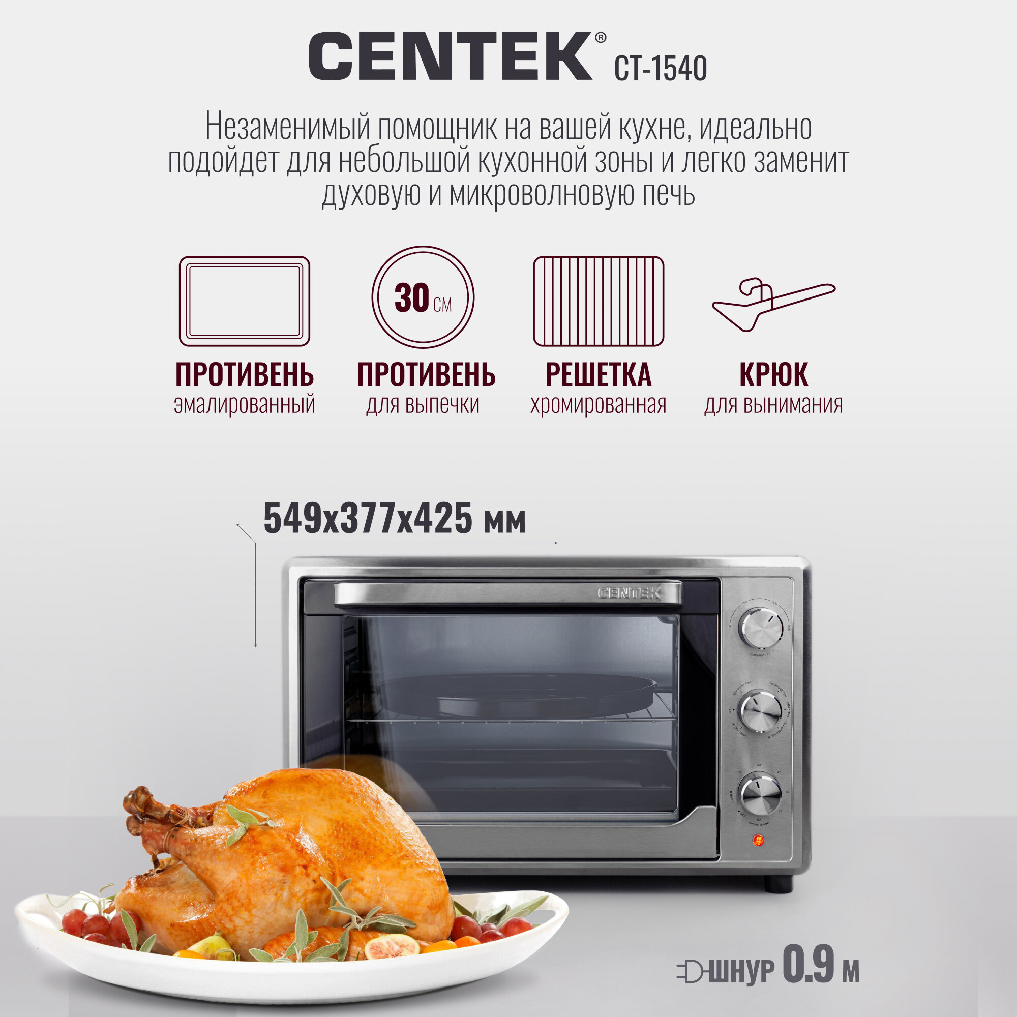 Ниже Вы можете прочитать отзывы на Мини-печь с конвекцией Centek CT-1540: 50л, 2000Вт, таймер 90мин, 4 режима работы, духовой жарочный шкаф электрический, ознакомится с подробными характеристиками, посмотреть интересные обзоры и фотографии на Мини-печь с конвекцией Centek CT-1540: 50л, 2000Вт, таймер 90мин, 4 режима работы, духовой жарочный шкаф электрический.