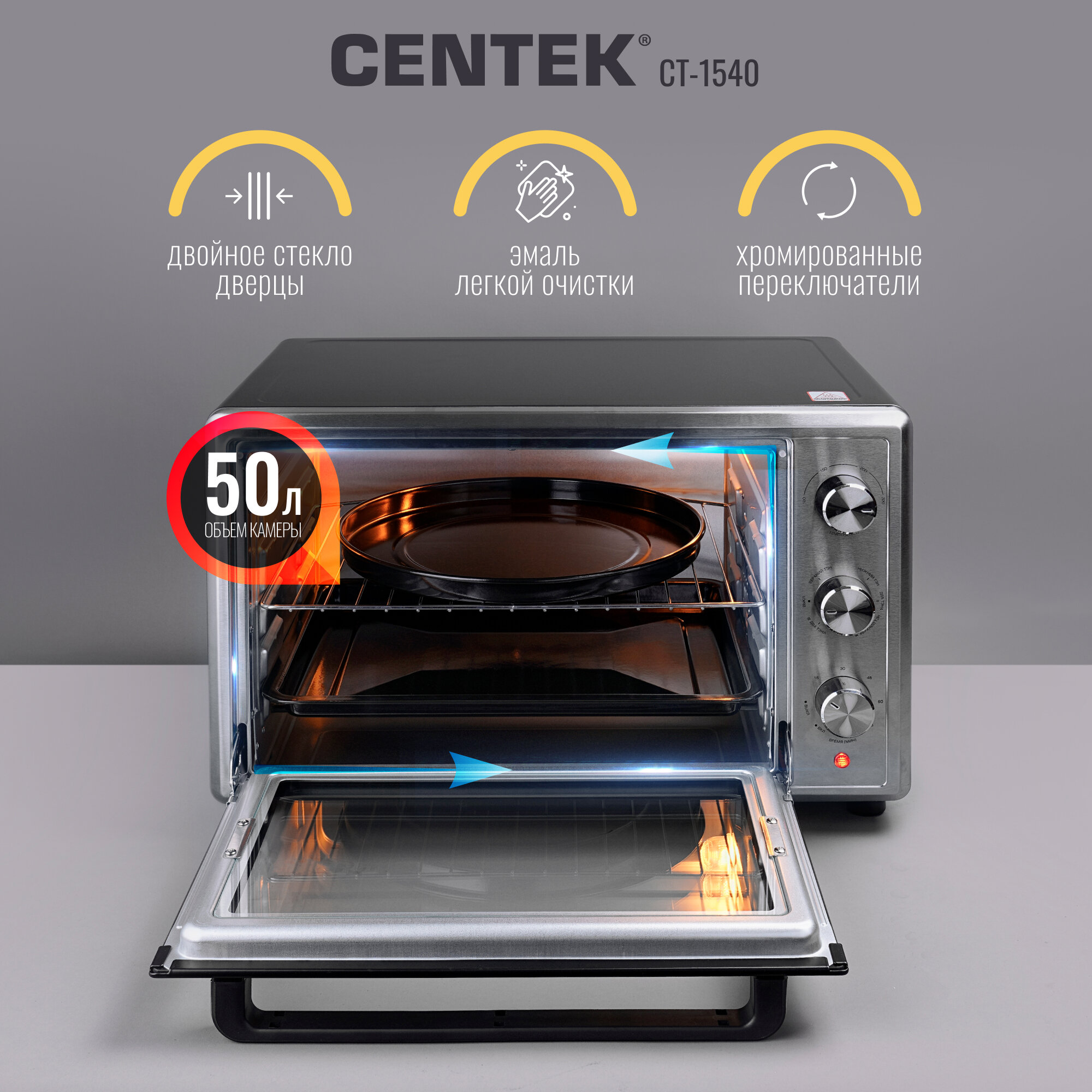 Купить Мини-печь с конвекцией Centek CT-1540: 50л, 2000Вт, таймер 90мин, 4 режима работы, духовой жарочный шкаф электрический