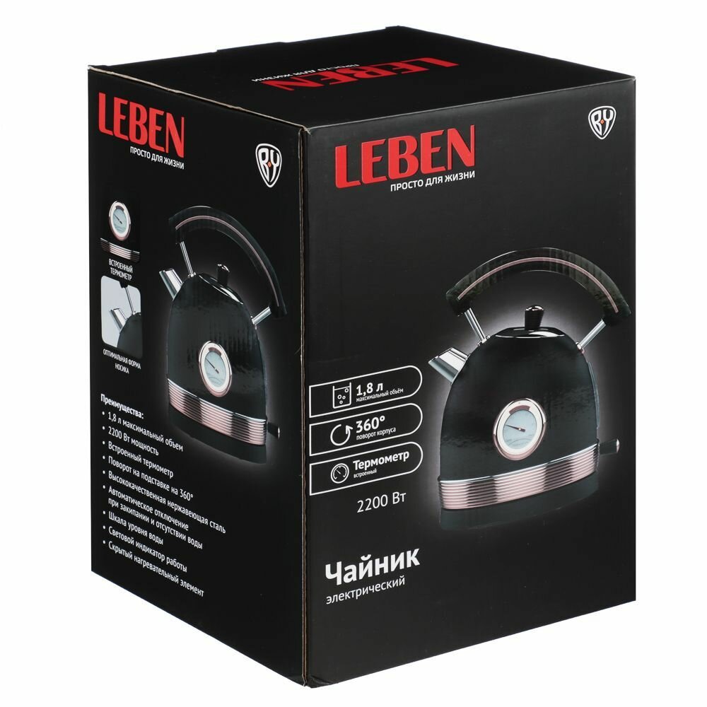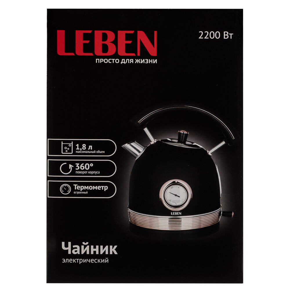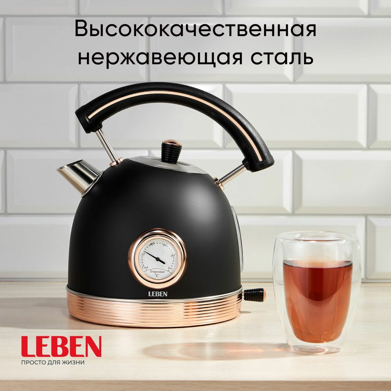 Купить LEBEN Чайник электрический 1,8 л, 2200 Вт, металл, черный с золотом, термометр