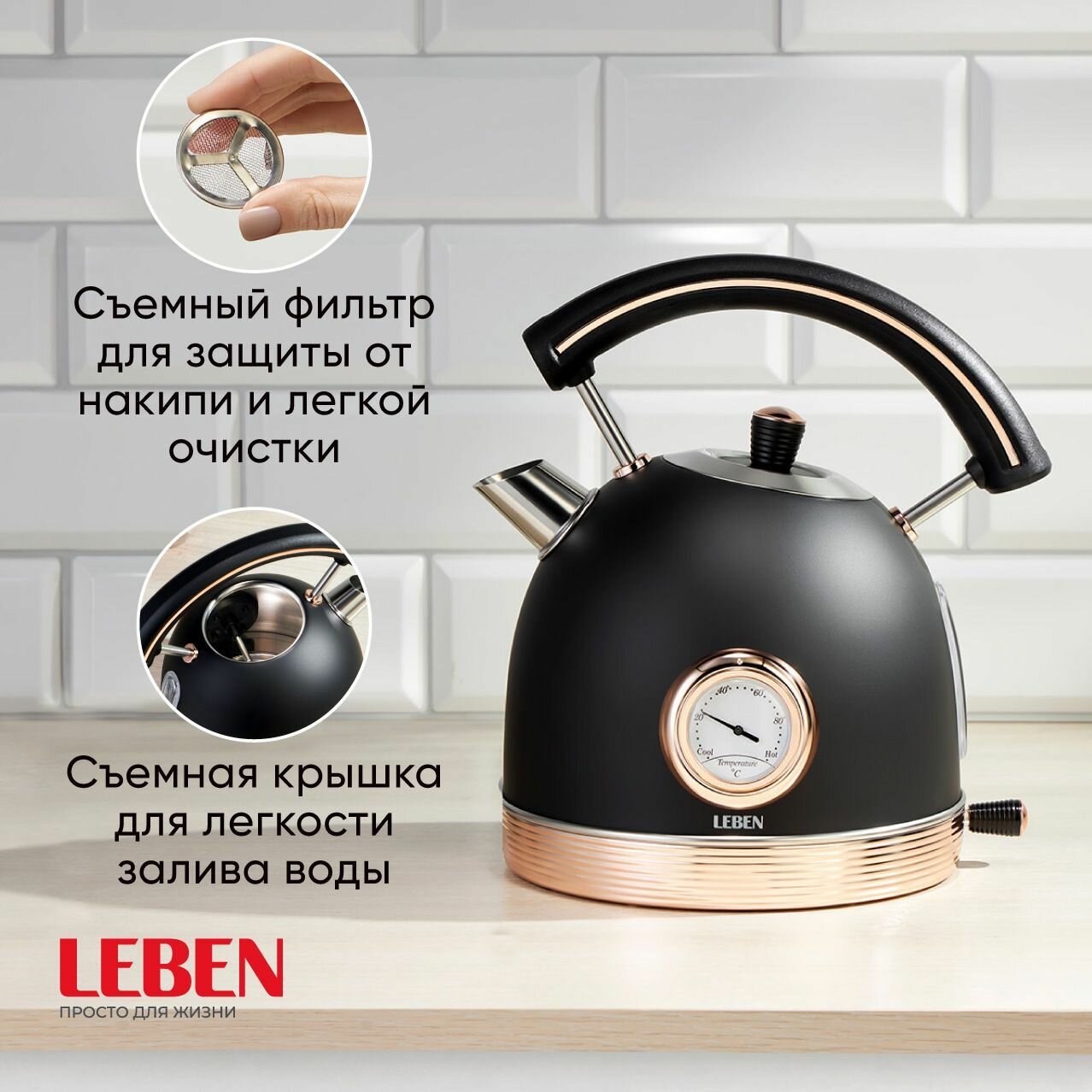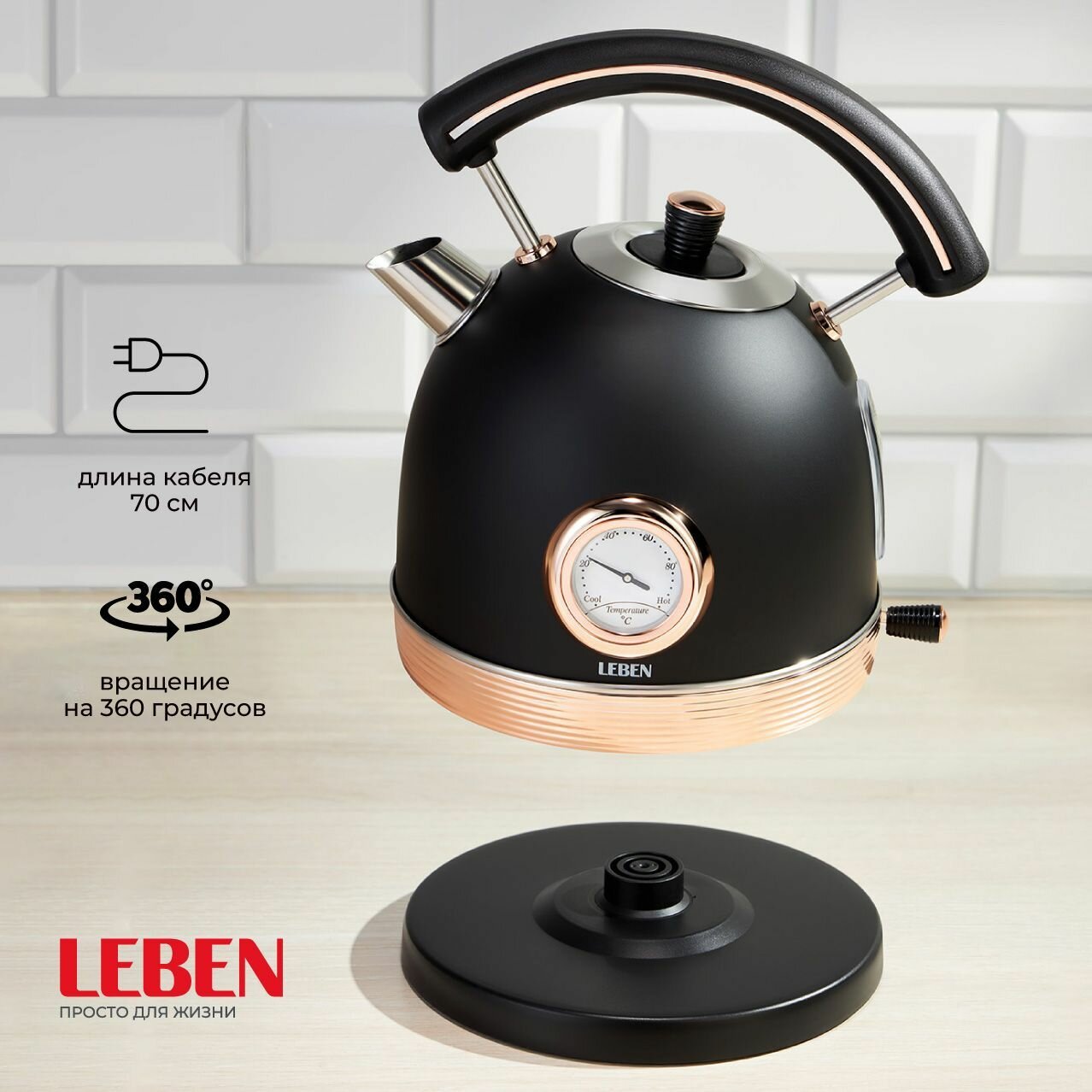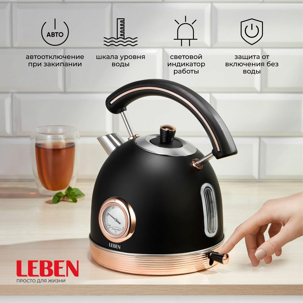 LEBEN Чайник электрический 1,8 л, 2200 Вт, металл, черный с золотом, термометр интересное: