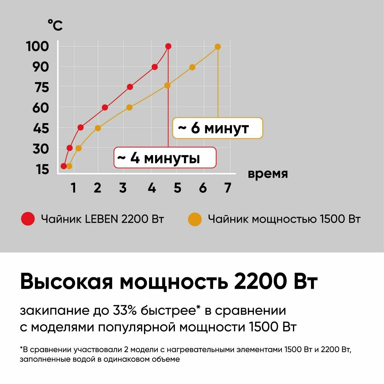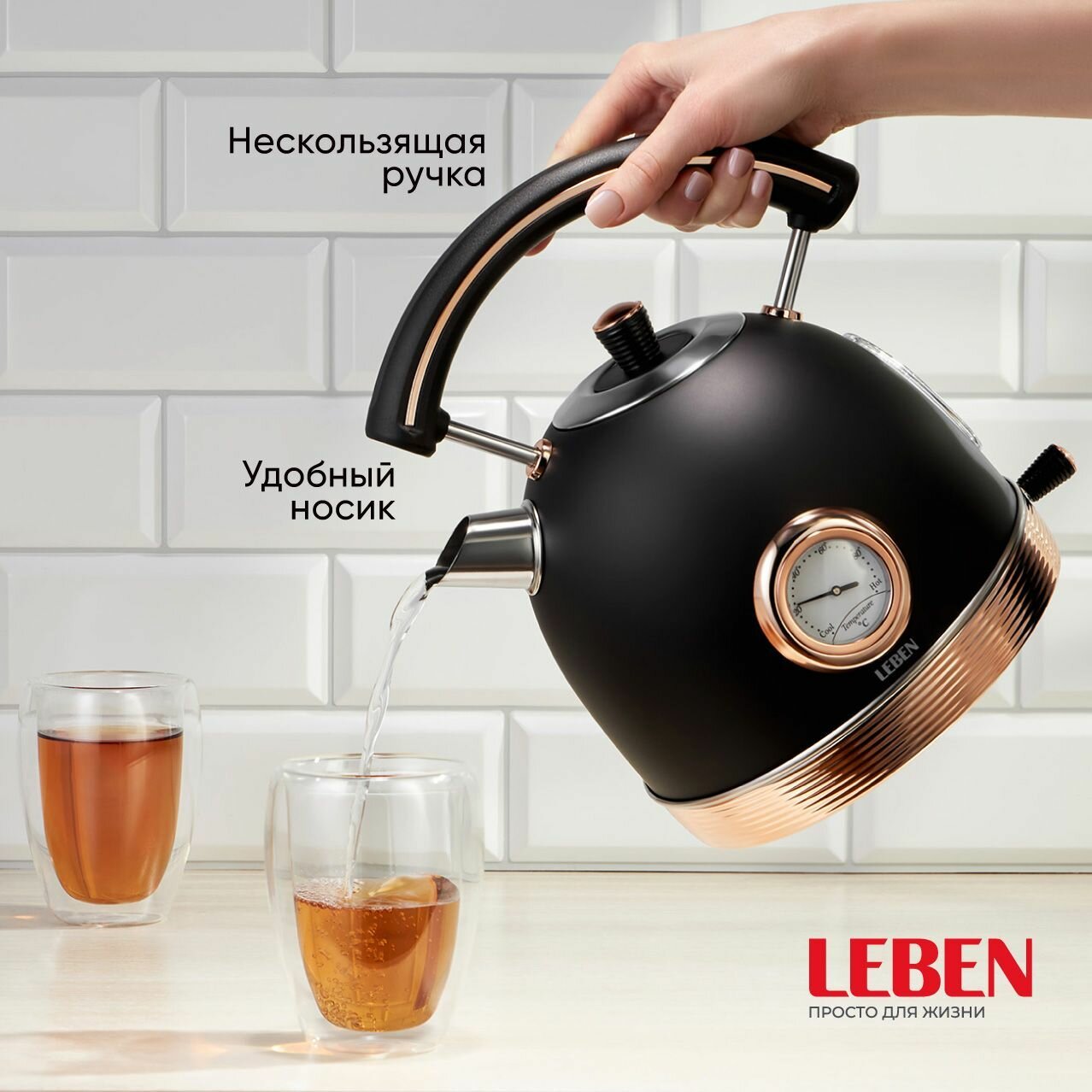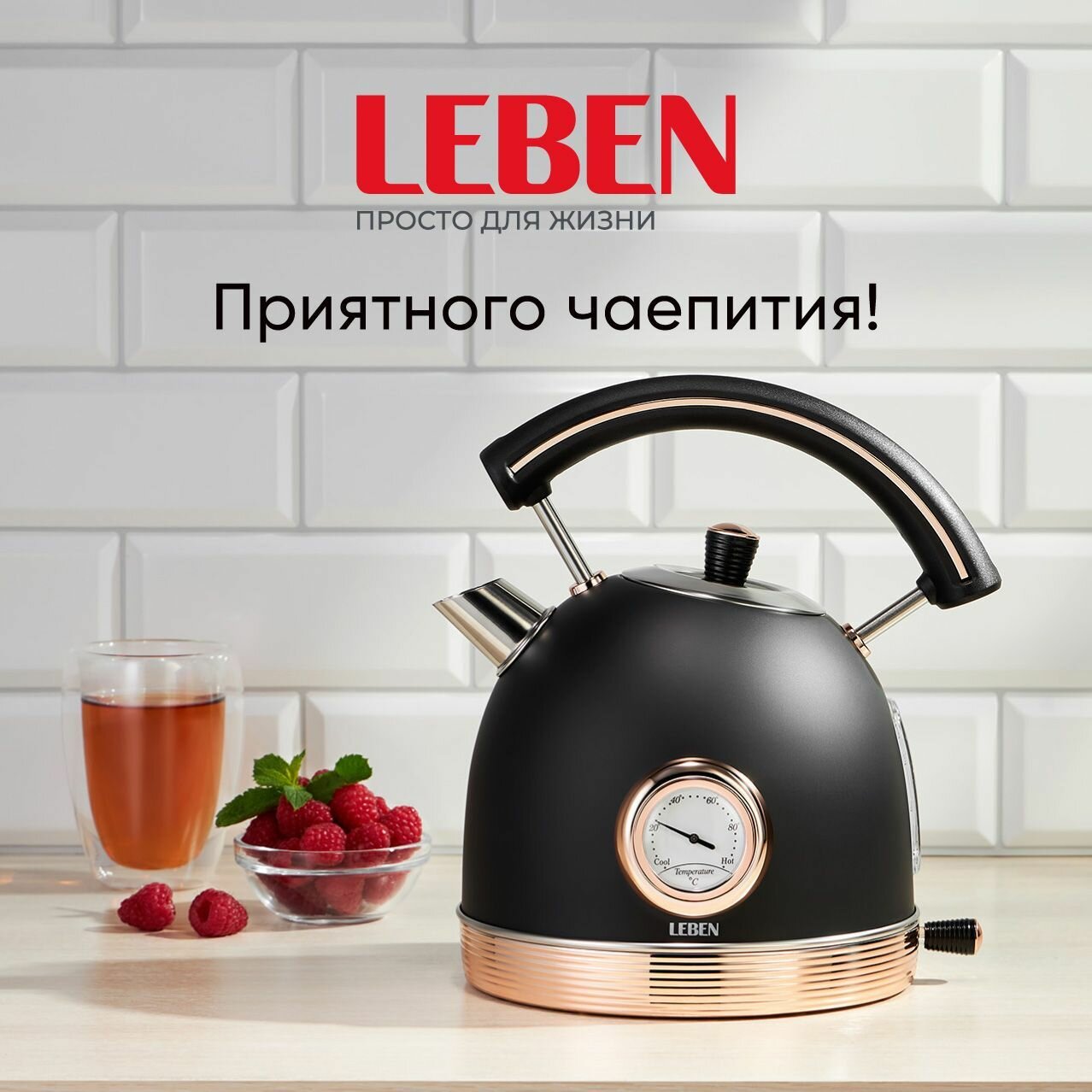 LEBEN Чайник электрический 1,8 л, 2200 Вт, металл, черный с золотом, термометр интересное: