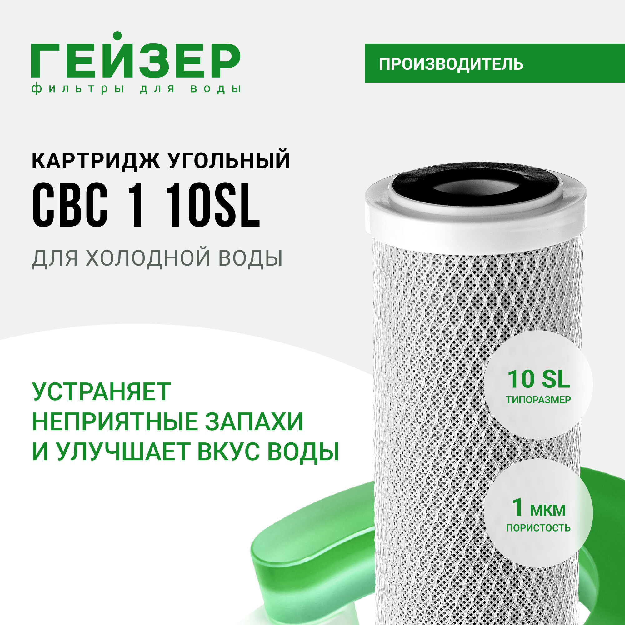 Гейзер CBC-10SL (К) 1 мкм. Угольный картридж 25% кокосовый, 75% минеральный; 27005