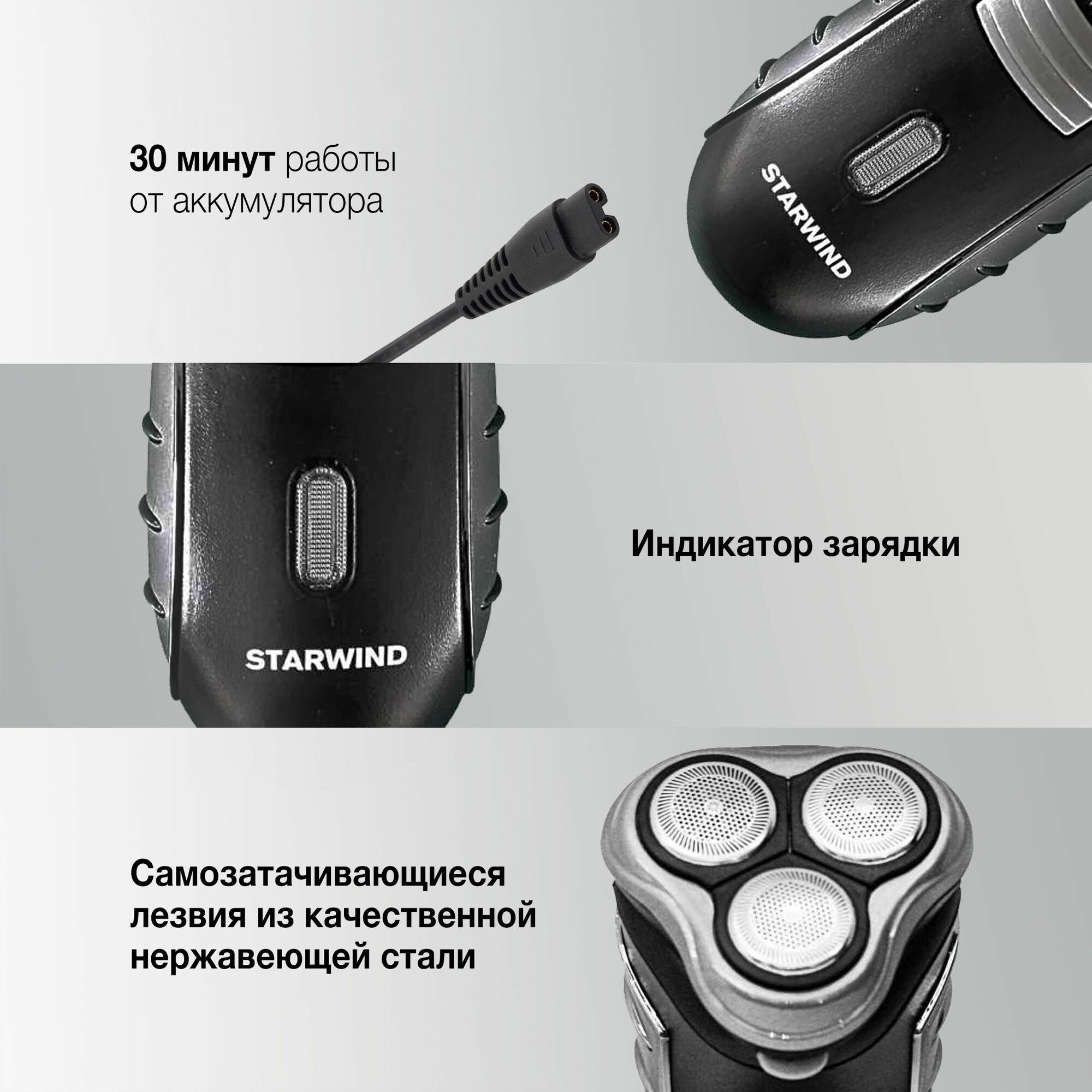 Бритва Starwind SBS1501, роторная, питание аккумулятор, черный/серебристый