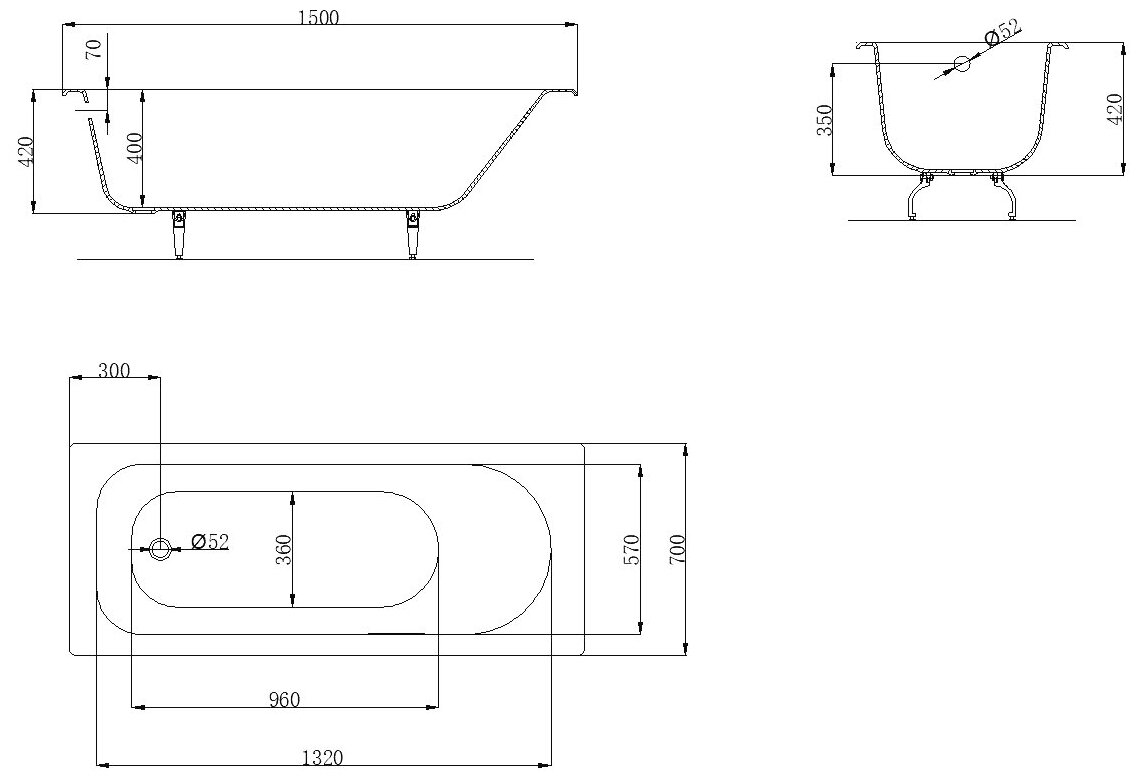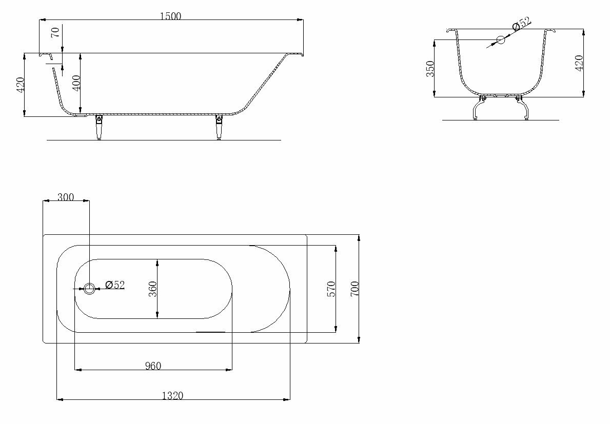 Ванна чугунная OWL 1975 Roxen 150х70 см без ручек, ножки в комплекте