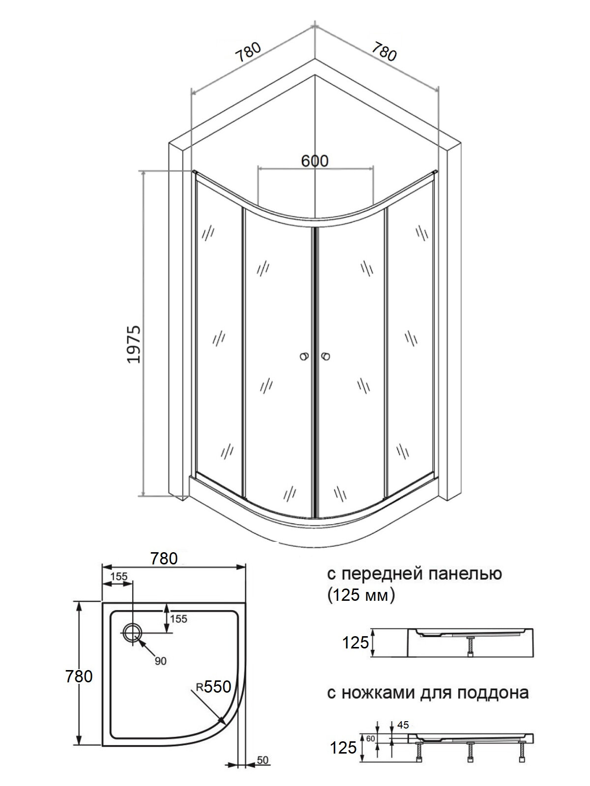 | Форма поддона | четверть круга |