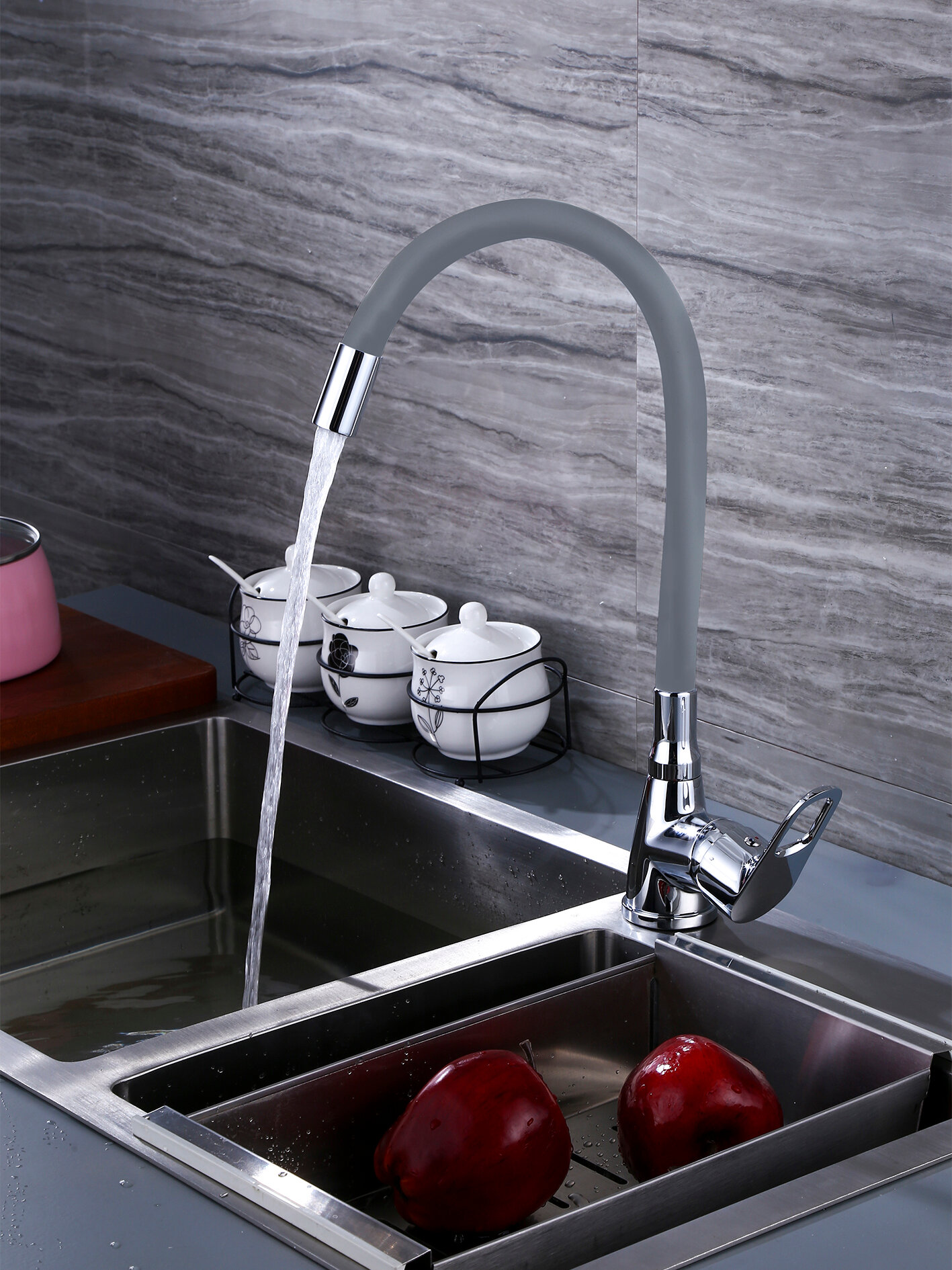 Смеситель для кухни с гибким изливом HANSEN H59004P серый