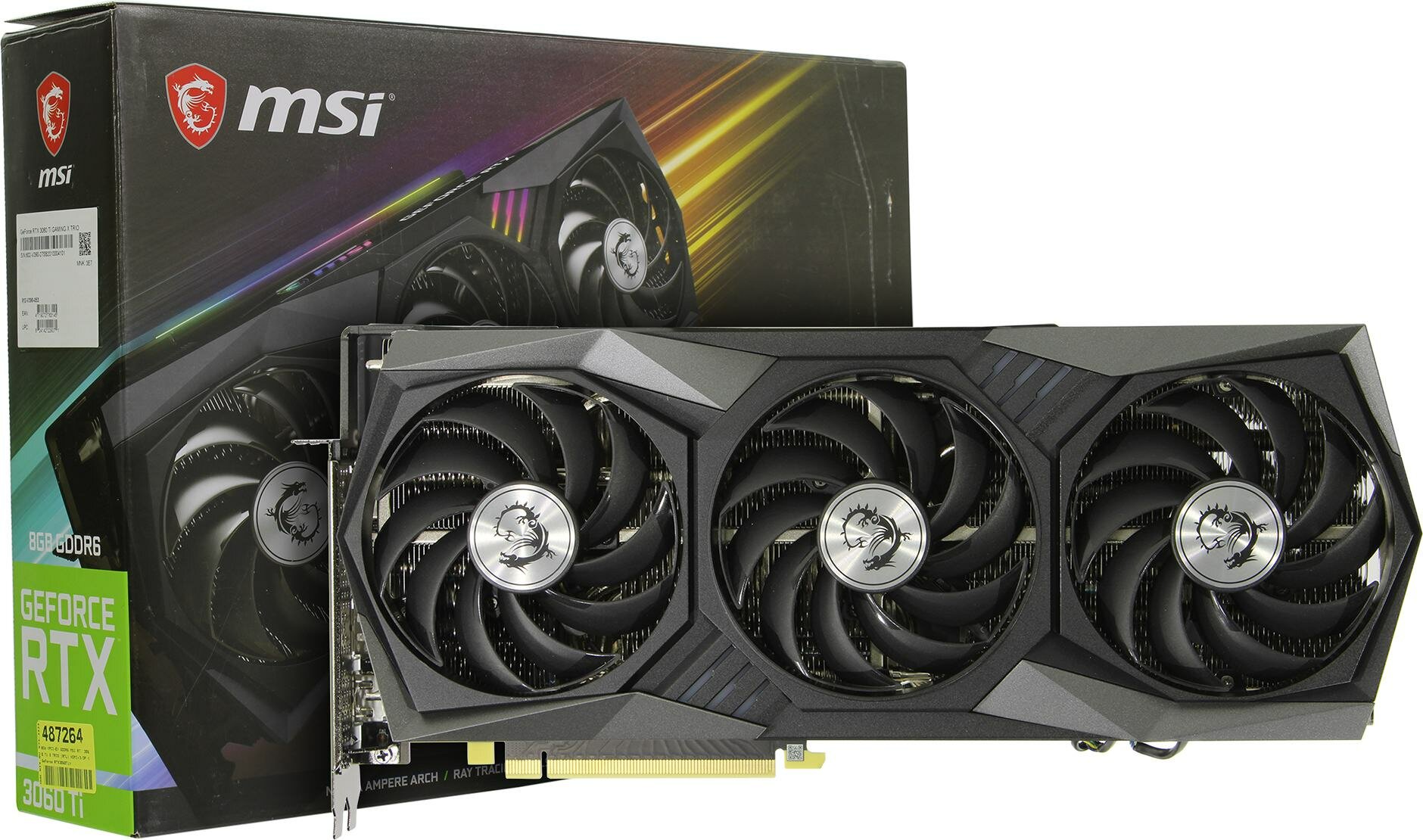 Видеокарта MSI NVIDIA GeForce RTX 3060Ti, RTX 3060 Ti GAMING X TRIO 8GD6X, 8ГБ, GDDR6X, Ret