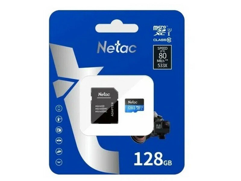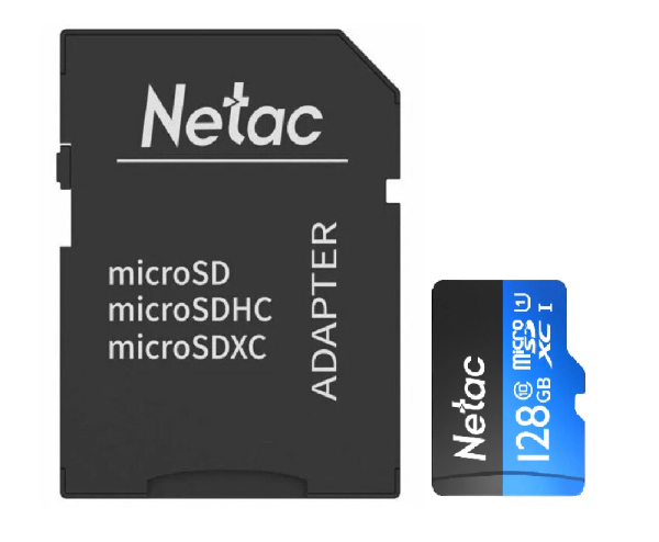 MicroSD 128 Гб Netac P500 Standard UHS-I (90 Mb/s) + SD адаптер (Class 10)