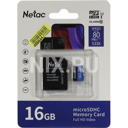 Купить Карта памяти microSDHC UHS-I U1 NETAC P500 16 ГБ, 80 МБ/с, Class 10, NT02P500STN-016G-R, 1 шт., пер