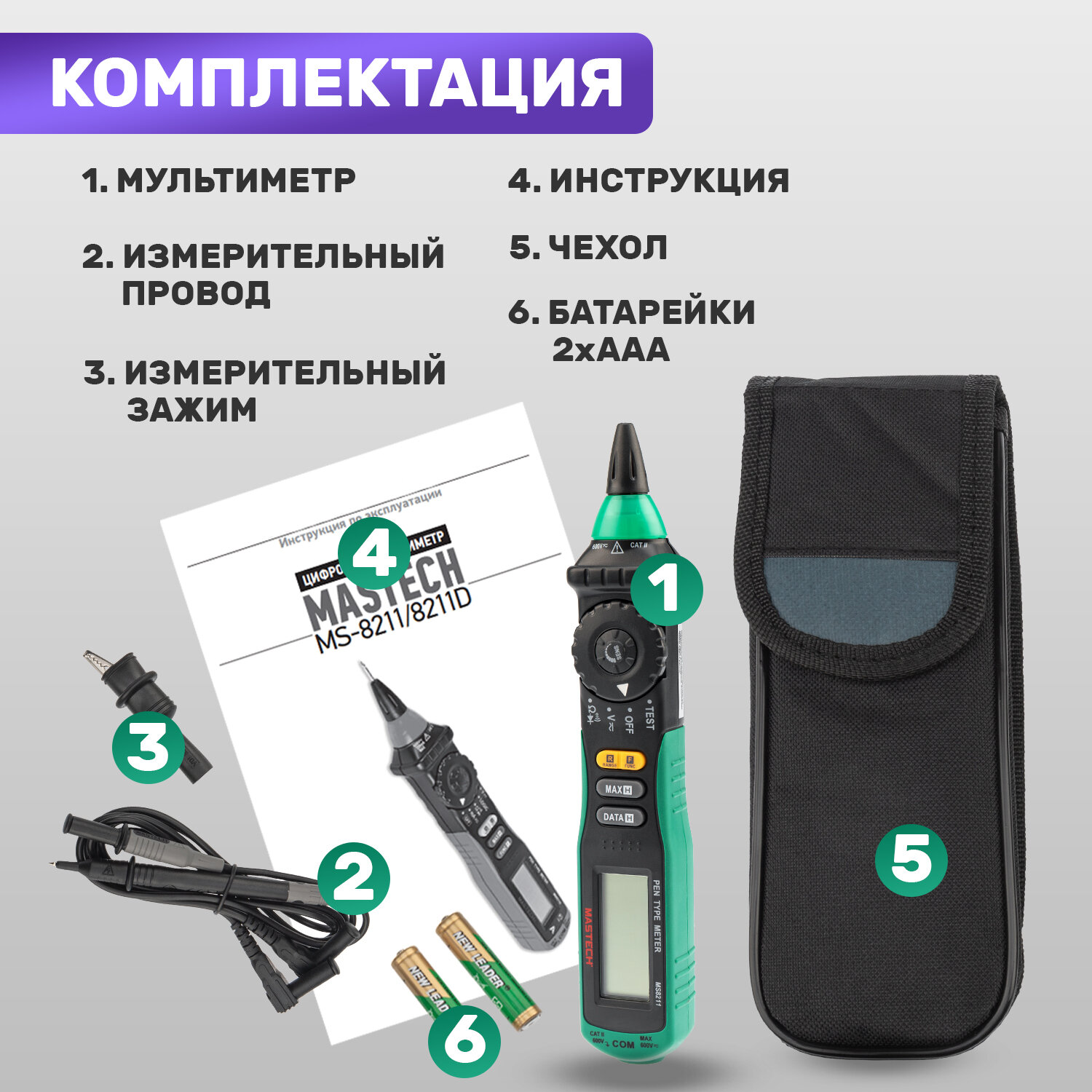 Цифровой мультиметр/тестер напряжения MASTECH MS8211 с бесконтактным датчиком напряжения