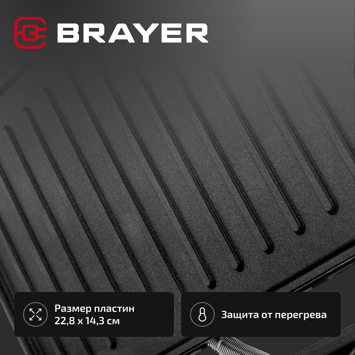 Электрический гриль BRAYER BR2003, 900 Вт, пластина 22,8*14,3 см, антипригарное покрытие, поддон, защита от перегрева