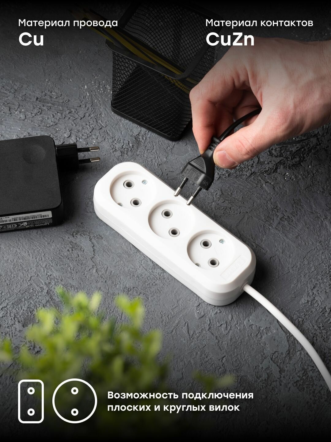 СохранитьУдлинитель бытовой без заземления, 3 розетки, 5 метров, Эксперт (10А-2,2кВт, ПВС) интересное: