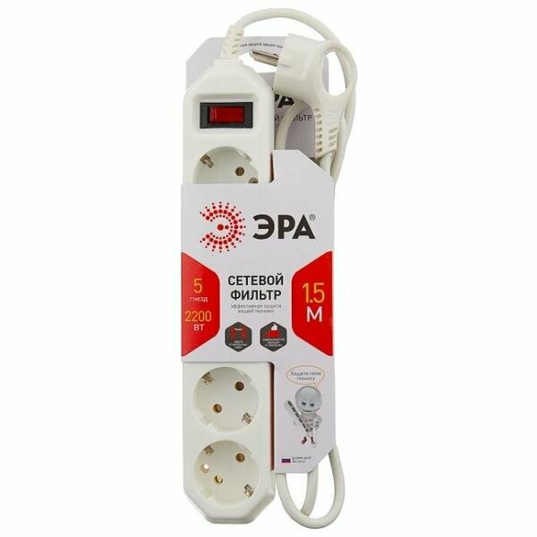 Сетевой фильтр Эра USF-5es-5m-I (Б0019739) с заземл, 3x0,75мм2, с выкл, 5гн, 5м (защита от короткого замыкания, от перегрузки, от импульсных помех)