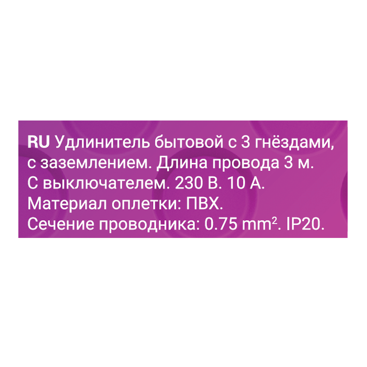 | Плюсы: | Был небходим удлинитель (на 3 метра, 220 В.), выбрал этот исходя из Цена/Качество. |