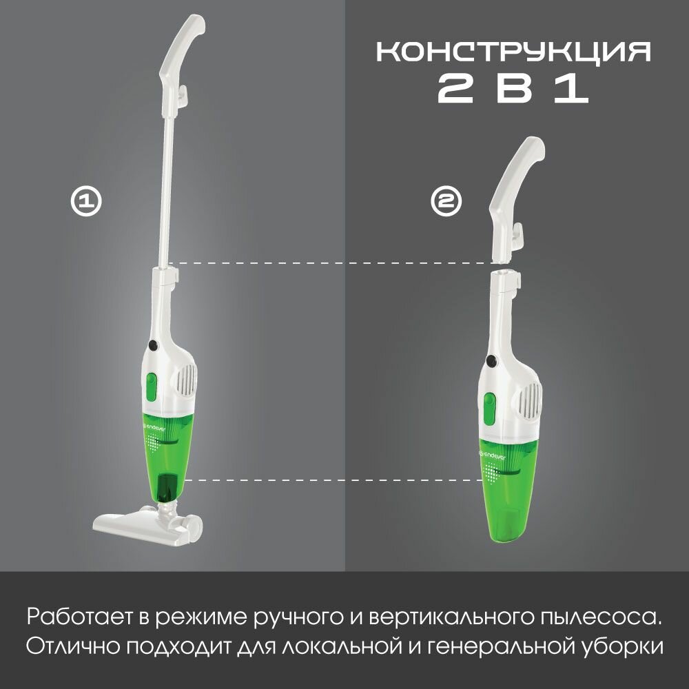 Пылесос вертикальный для дома Endever VC-278 / 2в1 вертикальный/ручной / 700 Вт / мощность всасывания 130 Вт / пылесборник 1,2л